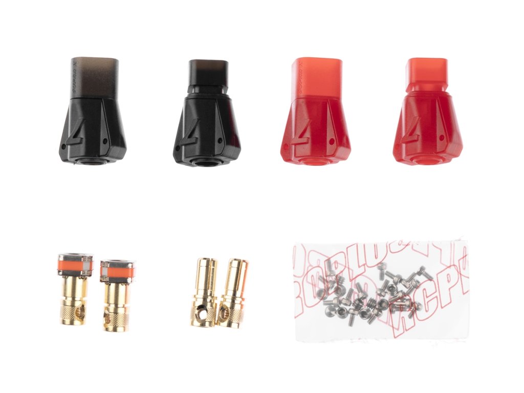 Zlacené 7mm Anti-spark konektory s domkem pro 8,4mm2 (8AWG) kabel. Konstantní proud 280A, špičkový 320A. Max 60V DC. Nepájecí varianta - kabel je zajištěn pomocí dvou imbusových červíků. Balení 2 páry (2x anti-spark samice + 2x samec). Kompatibilní s S7 7808 ULTRA (REB7808ULTS7P6 a REB7808ULTS7P2). Objednací kód výrobce REB7808 ASST S7 P2.Doplňkové parametry