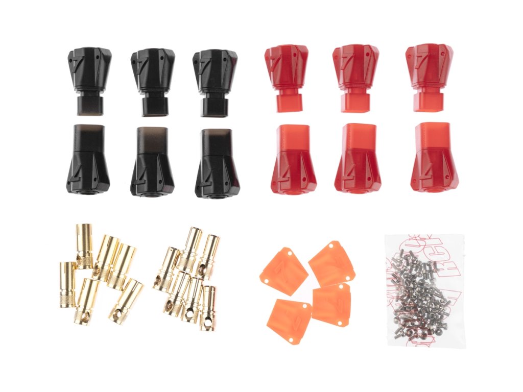 Zlacené 7mm konektory s domkem pro 8,4mm2 (8AWG) kabel. Konstantní proud 280A, špičkový 320A. Max 60V DC. Nepájecí varianta - kabel je zajištěn pomocí dvou imbusových červíků. Balení 6 párů. Kompatibilní s Anti-spark S6 7808 ASST (REB7808ASSTS7P2). Objednací kód výrobce REB7808 ULTRA S7 P6.Doplňkové parametry