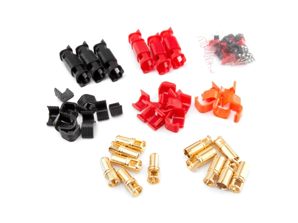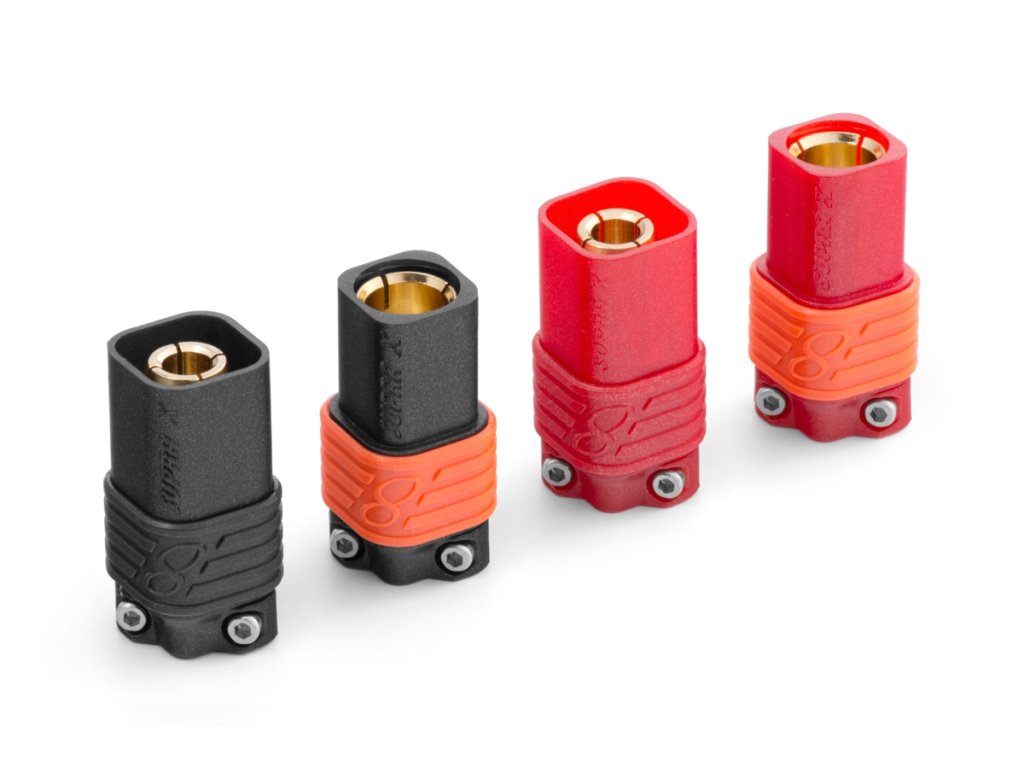 Zlacené 8mm konektory s domkem pro 8,4-13,3mm2 (6-8AWG) kabel. Konstantní proud 270A, špičkový 310A. Max 60V DC. Balení 6 párů (3 červené a 3 černé).