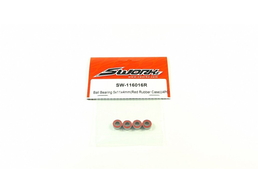 SWORKz kuličkové ložiska s červenou gum. prachovkou 5x11x4mm, 4 ks.