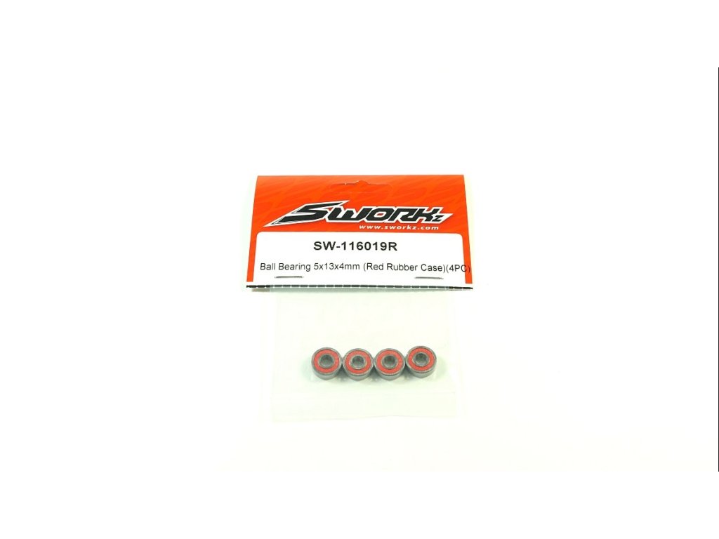 SWORKz kuličkové ložiska s červenou gum. prachovkou 5x13x4mm, 4 ks.