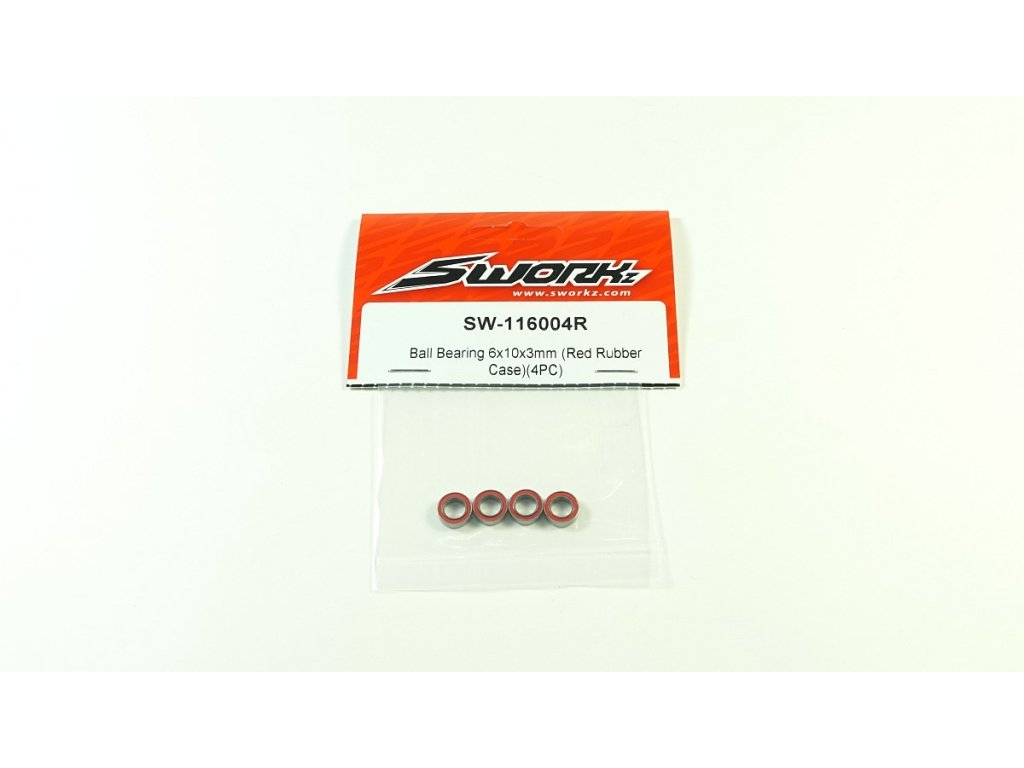 SWORKz kuličkové ložiska s červenou gum. prachovkou 6x10x3mm, 4 ks.