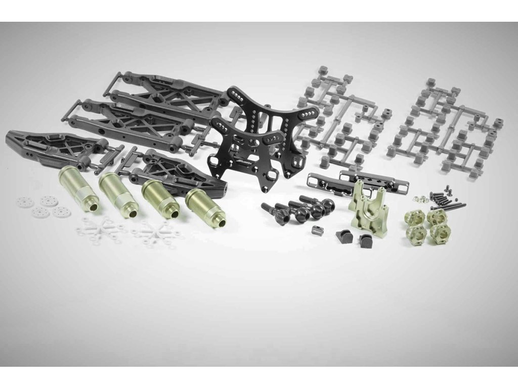 Včetně konverzní sady která obsahuje navíc: Přední spodní ramena, Zadní spodní ramena, Přední a zadní hliníkové parohy/držáky olejových tlumičů, dva hliníkové držáky ramen, čtyři těla olejových tlumičů, hliníkové unašeče kol, Hliníkový držák motor, Kulové čepy předních nábojů plus příslušenství.
