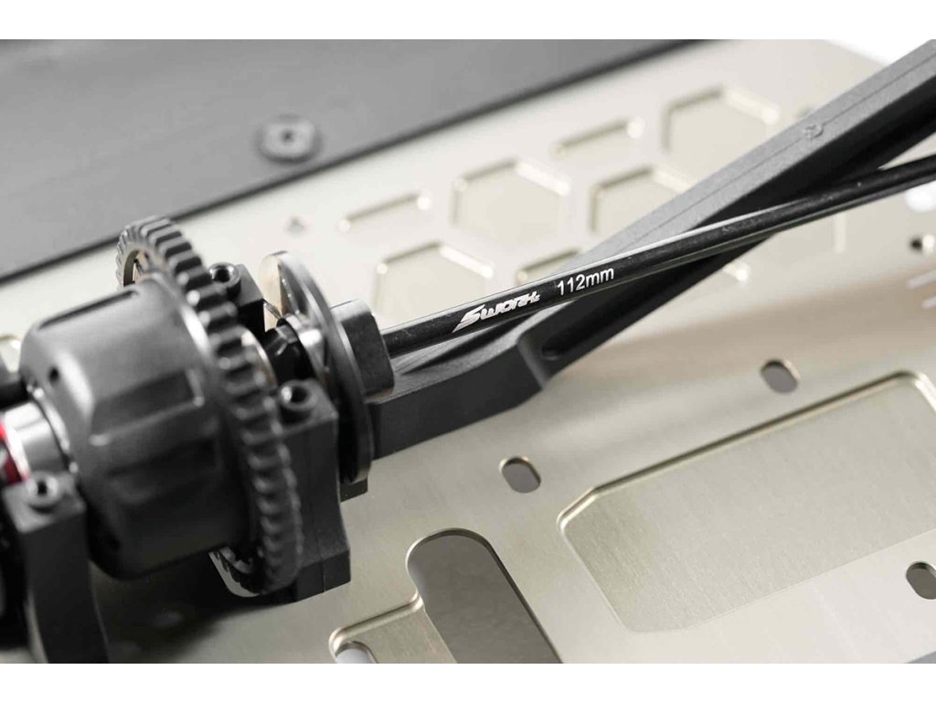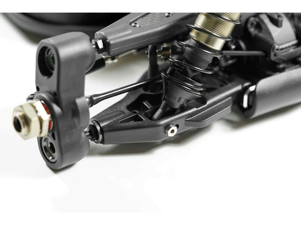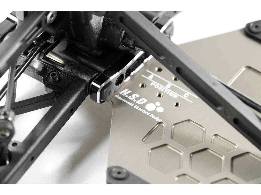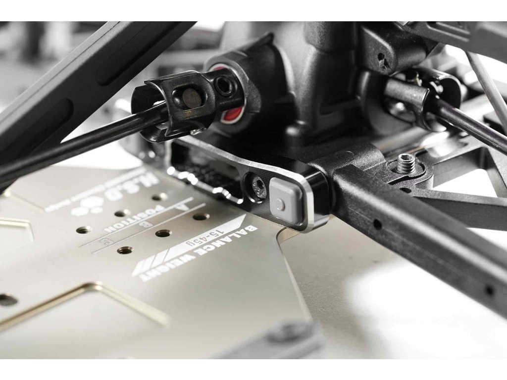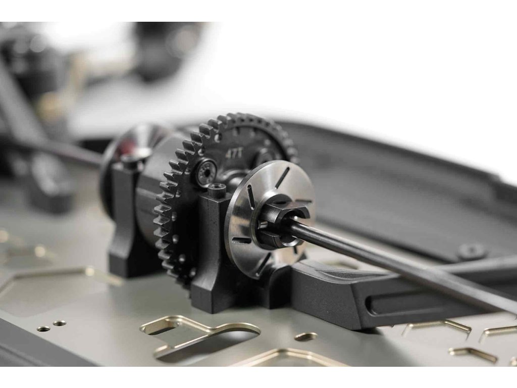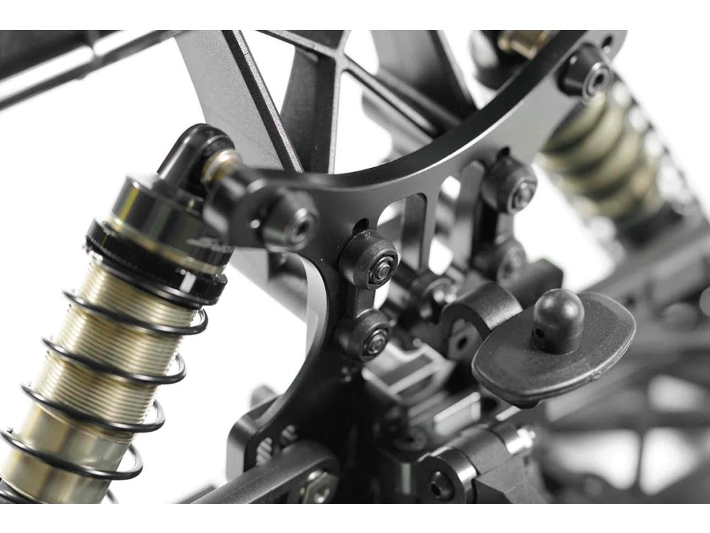 Model S35-4 EVO je vybaven tvrdě eloxovaným a odlehčeným hliníkovým podvozkem T7075 s novou konstrukcí s krátkým rozvorem kol, která byla dlouhodobě testována našimi továrními piloty a která zaručuje nejlepší vyvážení rychlosti předního i zadního zavěšení.