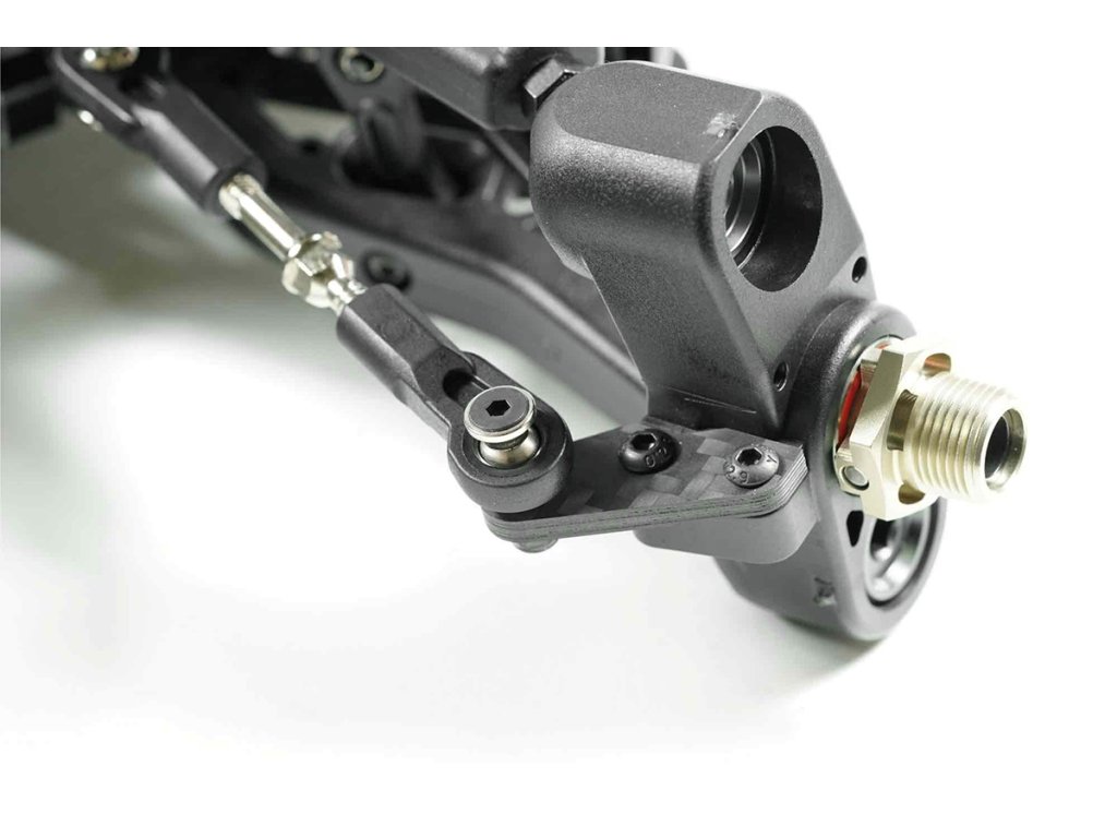 Nový model S35-4 EVO se dodává se zcela novým systémem řízení Lay-Down Type Steering Bell crank servo saver. Tato nová konstrukce Ackermanu poskytuje řidiči lepší kontrolu nad Buggy S35-4 EVO.