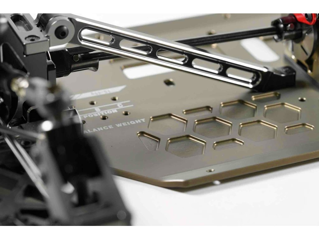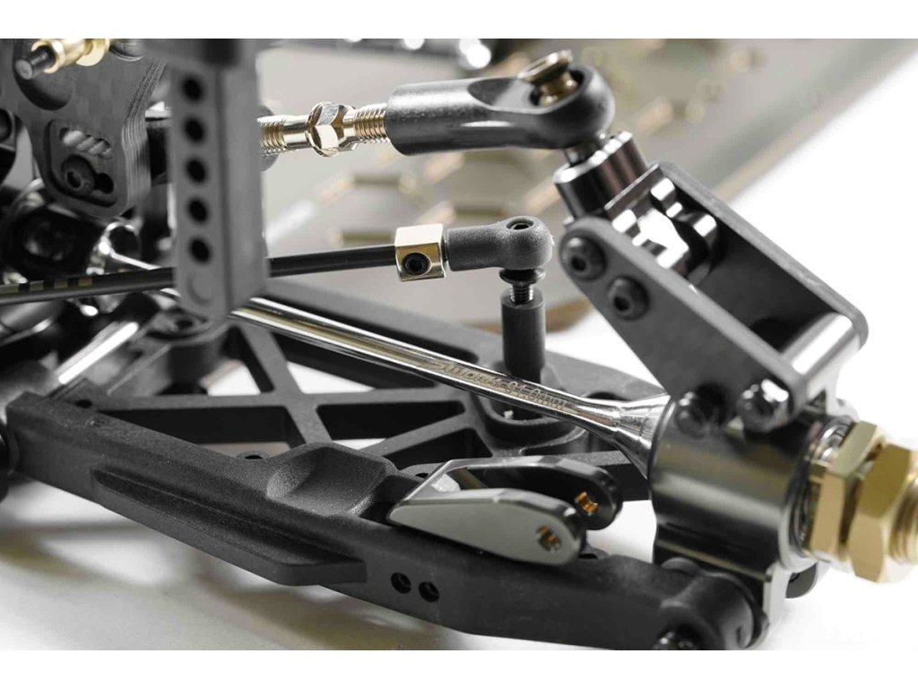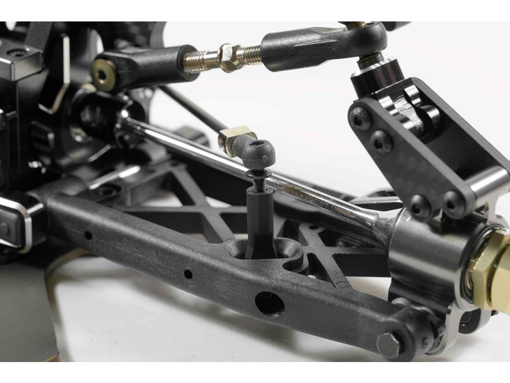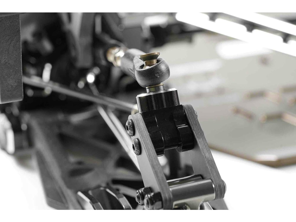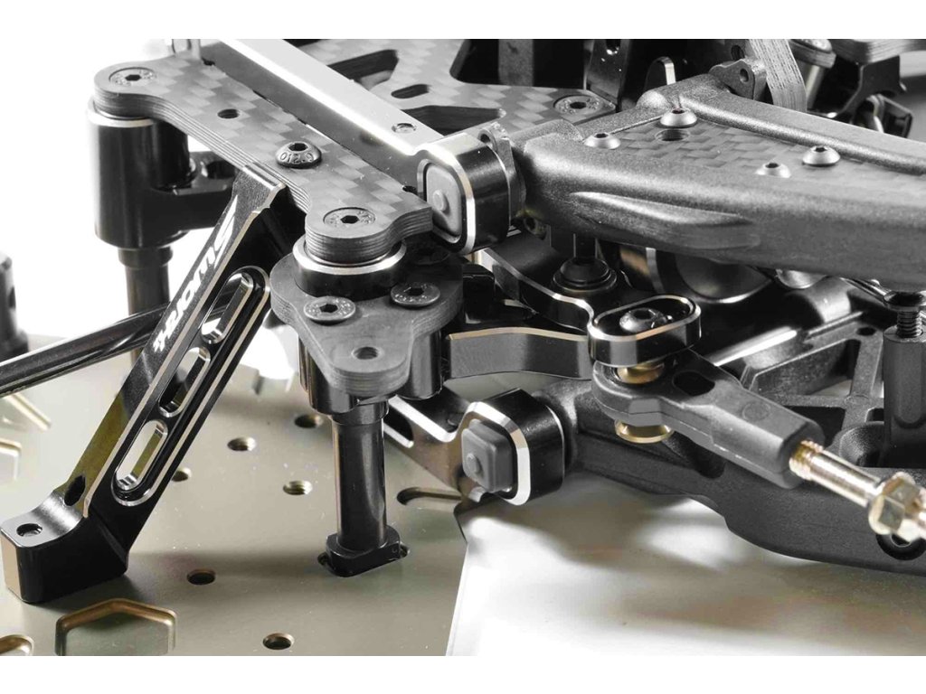 Držáky ramen, které jsou součástí dodávky, se čtvercovými vložkami umožňují přizpůsobit geometrii náprav vašeho modelu SWORKz S35-GT2 jakémukoli uspořádání trati. Přední a zadní ramena CVD jsou vyrobena z nově vyvinutého kompozitního materiálu.