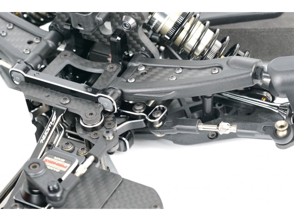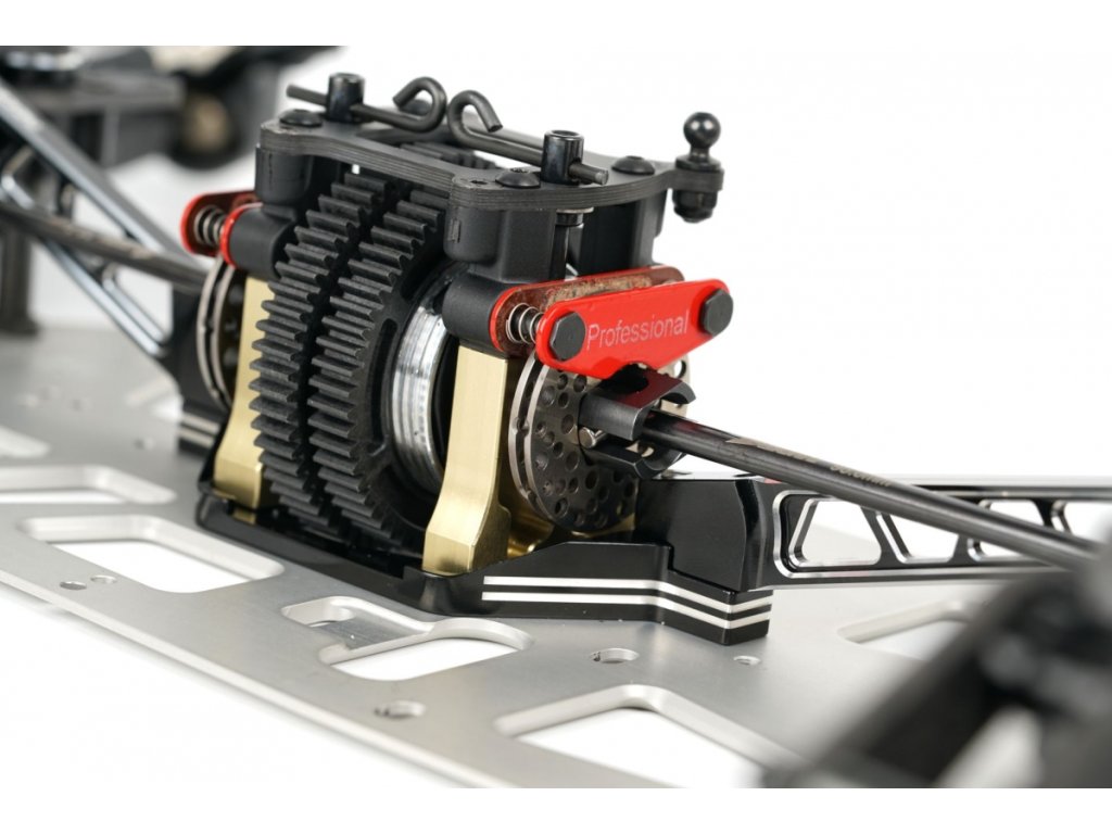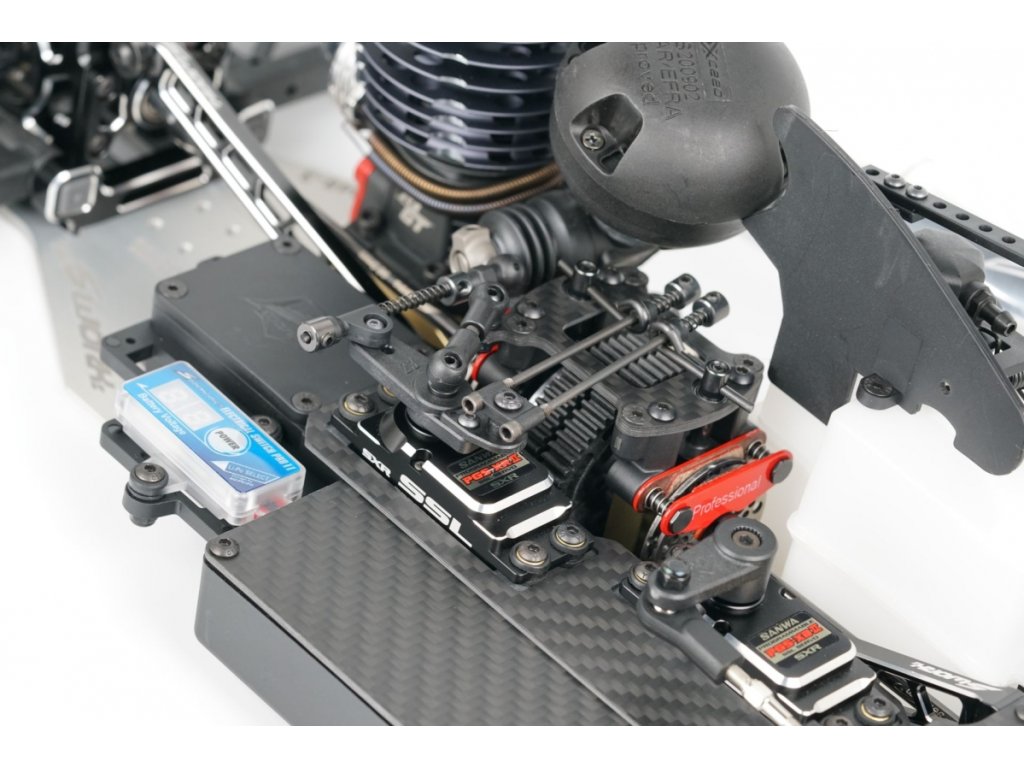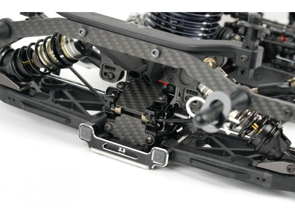 Vůz je vybaven vysoce kvalitními hliníkovými přepážkami, které umožňují měnit výšku diferenciálů. Servo saver s přímou odezvou a novým Ackermann systémem.