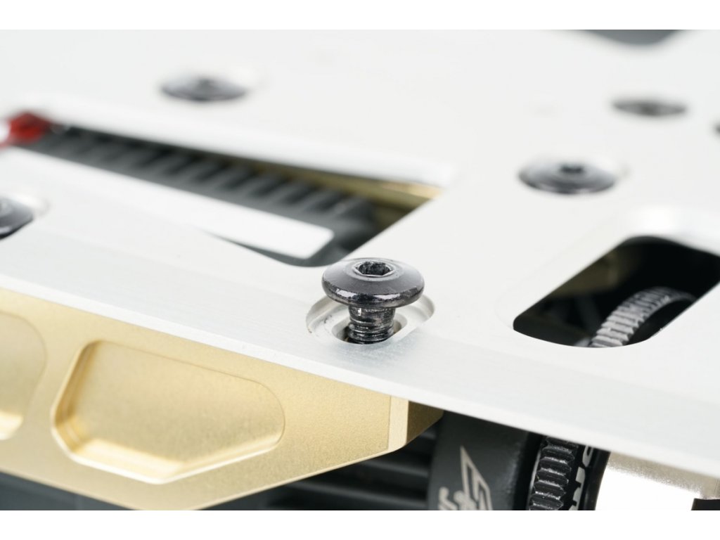 Model S35-GT3.0 má hmotnostně optimalizované, stříbrně eloxované hlavní plato podvozku vyrobené z vysoce pevného hliníku T7075.