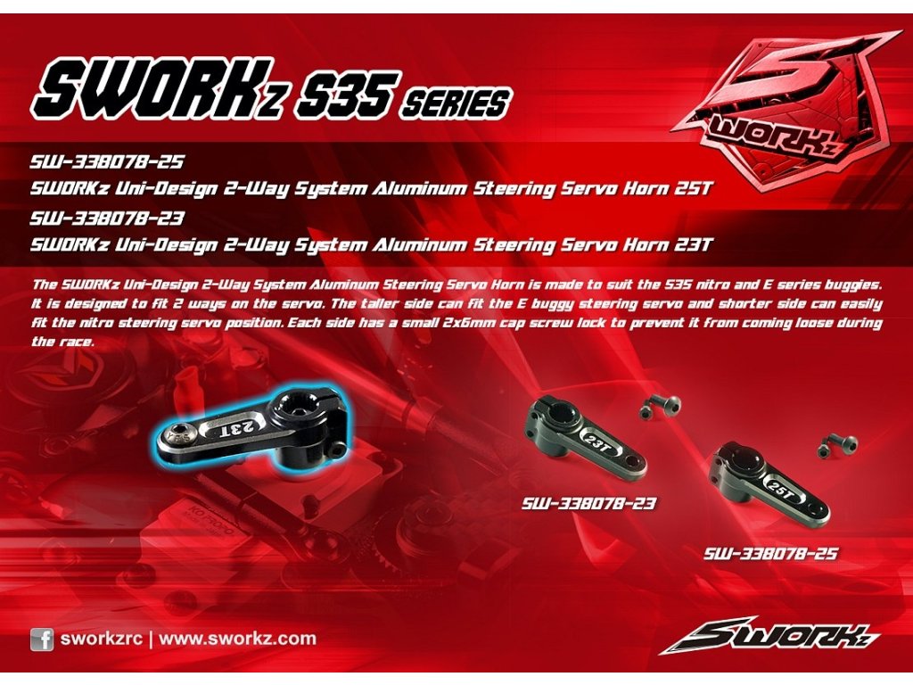 SWORKz Uni-Design 2-pojistná hlíníková černá servo jednoramená páka, 23 zubů, 1 ks.