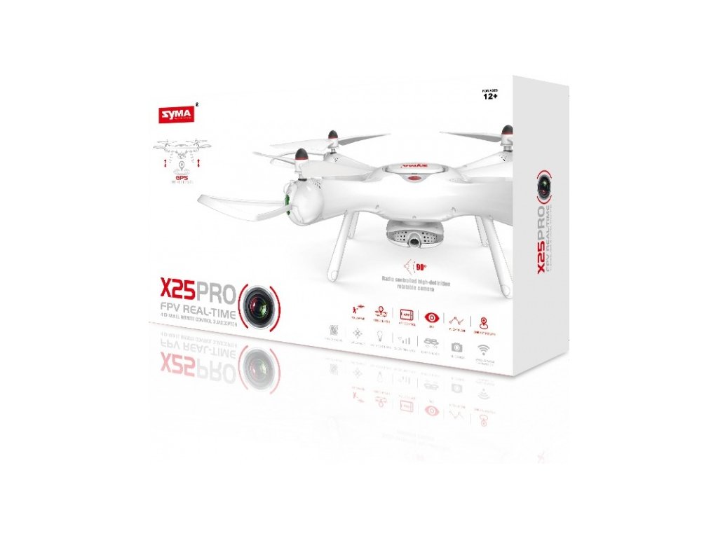 Syma X25PRO je technologiemi nabitá kvadrokoptéra disponující mnoha inteligentními funkcemi, jako například GPS pozicování, autonomní režimy letu, nebo plánovač letu. GPS pozicování společně s pokročilými senzory atmosférického tlaku zajišťuje stabilní visení vhodné pro pořizování leteckých záběrů v HD kvalitě, a v případě výpadku signálu pošle dron zpět k výchozí pozici, a nemůže dojít k jeho ztracení.