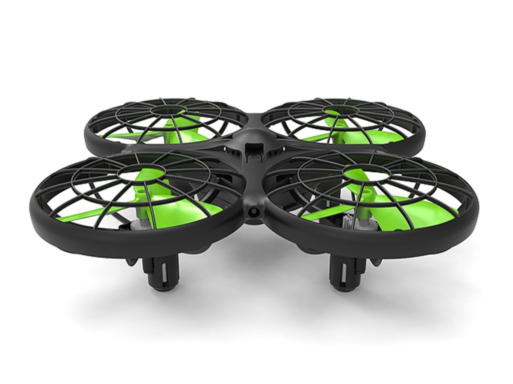 Vrtule tohoto lehoučkého dronu jsou chráněny ochrannými košíky, motory zase proti přepětí. Li-Po akumulátor 3,7 V 380 mAh, vzlet a přistání jedním tlačítkem, funkce automatického udržování výšky, funkce headless, 360° obraty, LED osvětlení. Dron disponuje senzory nárazu ve čtyřech směrech, dokáže tedy překážku identifikovat a obletět. Tato funkce je dostupná pouze v pomalém módu.
