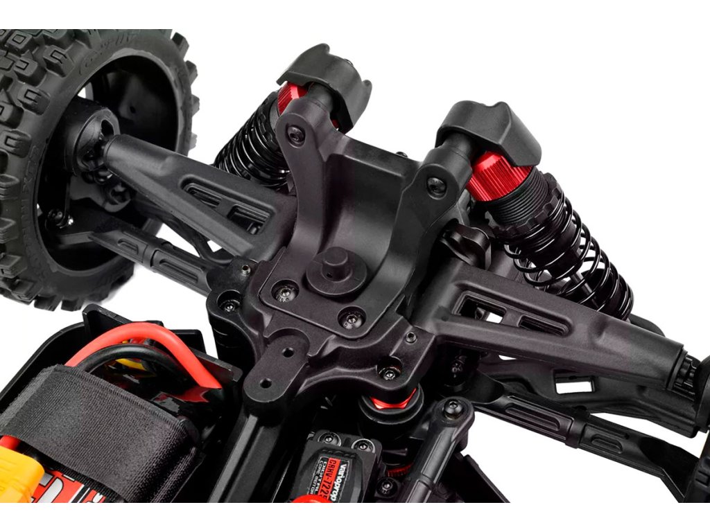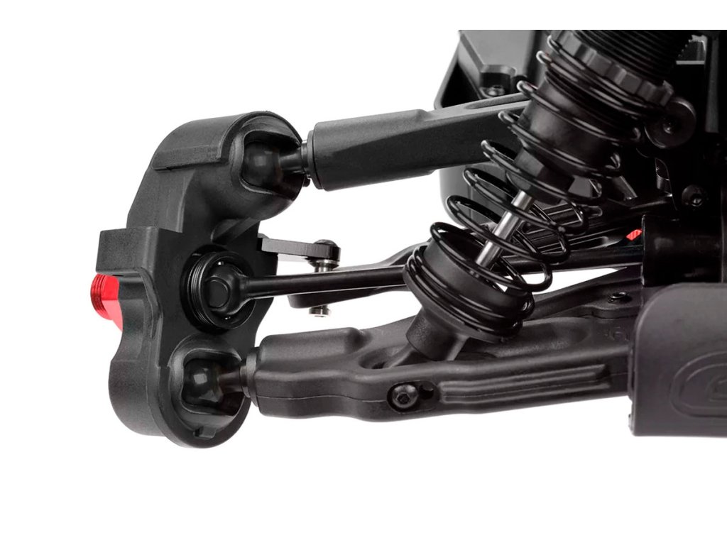 Team Corally se u podvozku modelu Syncro4 vůbec nedrží zpátky. Díky využití dobře známých a otestovaných ramen zavěšení z předchozích modelů, jako jsou Radix6 a Sketer, spolu s robustními předními a zadními těhlicemi zajišťuje Syncro4 špičkový výkon v jakémkoli terénu. Díky zařazení 4mm CNC frézovaných držáků ramen známých z modelu Spark XB6 a precizně zkonstruovaných linků (řízení, serva a zadních horních ramen) si model Syncro4 zachovává odolnost a bezkonkurenční výkon. I po zavedení nových plastových tlumičů a parohů si Team Corally pevně stojí za tím, že přináší systém odpružení, který nedělá kompromisy v kvalitě, odolnosti ani výkonu.