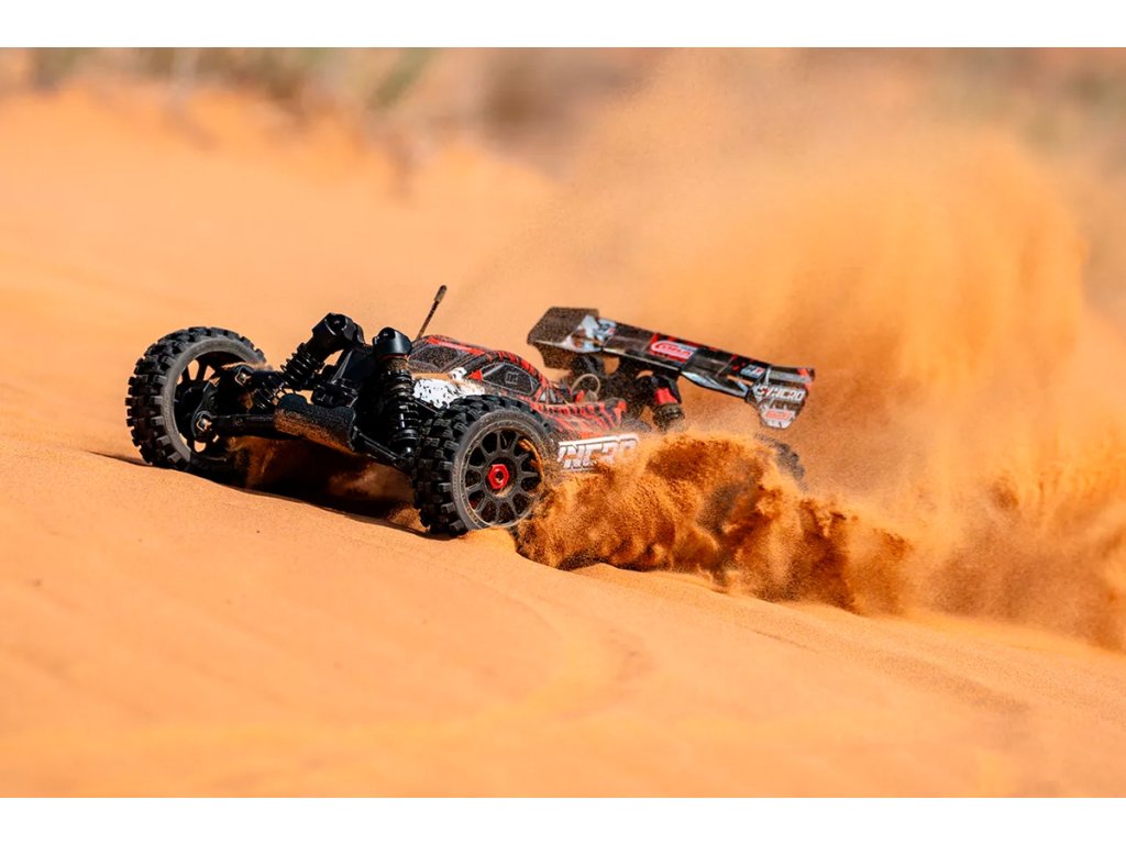 Tato 2WD buggy v měřítku 1:8 s pohonem 4S, navržená pro nováčky i nadšence, kombinuje profesionální konstrukci s uživatelsky přívětivými funkcemi a přináší bezproblémový a zábavný zážitek.