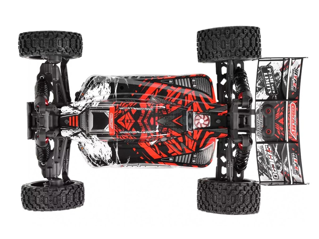 Každá součástka modelu Syncro je navržena s ohledem na odolnost a výkon. Jeho robustní systém zavěšení, inspirovaný vysoce výkonnou řadou 6S týmu Corally, obsahuje odolná ramena zavěšení, zesílené bloky řízení a odolné zadní těhlice. Tyto komponenty pracují v harmonii, aby si model snadno poradil se skoky, nerovnostmi a náročným terénem. Big Bore kompozitové tlumiče a robustní věže tlumičů udržují stabilitu modelu, zatímco lehký, ale pevný podvozek zajišťuje, že je připraven zvládnout jakékoli dobrodružství. Přidejte funkce, jako je kluzná spojka a ocelové převody a výsledkem je zábavná a spolehlivá buggy Syncro.