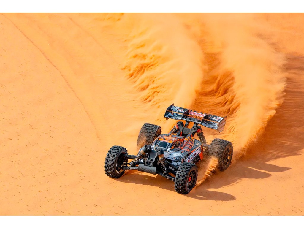 Tato 2WD buggy v měřítku 1:8 s pohonem 4S, navržená pro nováčky i nadšence, kombinuje profesionální konstrukci s uživatelsky přívětivými funkcemi a přináší bezproblémový a zábavný zážitek.