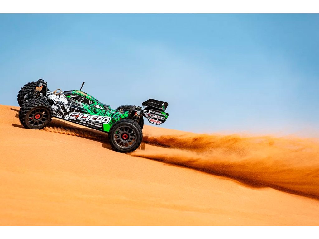 Ať už jste ve světě RC nováčkem, nebo hledáte spolehlivou, zábavně ovladatelnou buggy, Syncro je ideální volbou. Kombinuje konstrukci profesionální úrovně s designem vhodným pro začátečníky a je vším, co potřebujete k tomu, abyste si mohli užít vzrušení z jízdy.