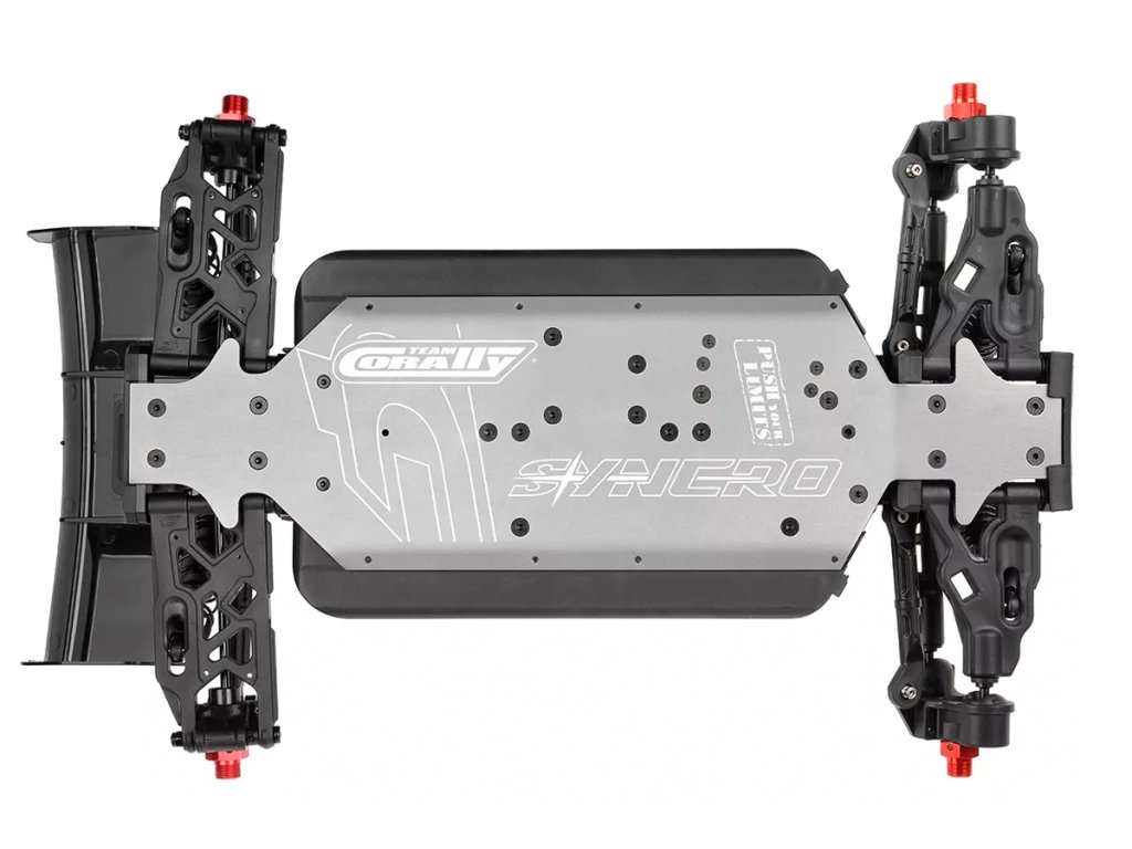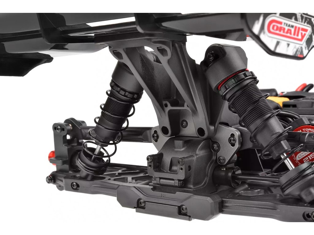 Každá součástka modelu Syncro je navržena s ohledem na odolnost a výkon. Jeho robustní systém zavěšení, inspirovaný vysoce výkonnou řadou 6S týmu Corally, obsahuje odolná ramena zavěšení, zesílené bloky řízení a odolné zadní těhlice. Tyto komponenty pracují v harmonii, aby si model snadno poradil se skoky, nerovnostmi a náročným terénem. Big Bore kompozitové tlumiče a robustní věže tlumičů udržují stabilitu modelu, zatímco lehký, ale pevný podvozek zajišťuje, že je připraven zvládnout jakékoli dobrodružství. Přidejte funkce, jako je kluzná spojka a ocelové převody a výsledkem je zábavná a spolehlivá buggy Syncro.