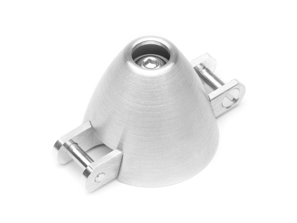 Precizní duralový TURBO kužel pro sklopnou vrtuli o průměru 30 mm s kleštinou 4 mm, s 3 mm čepy pro vrtulové listy s kořenem o tlouštce 8 mm. Vyrobeno v České republice.Doplňkové parametry