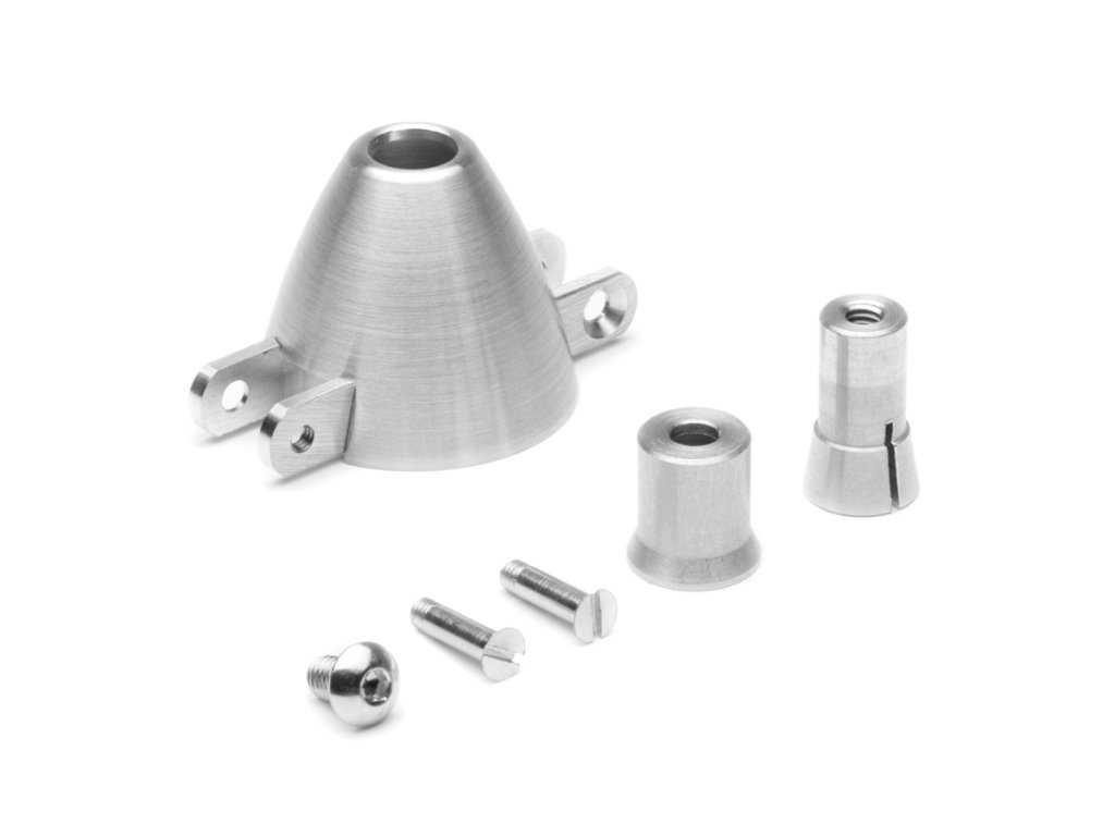 Precizní duralový TURBO kužel pro sklopnou vrtuli o průměru 30 mm s kleštinou 5 mm, s 3 mm čepy pro vrtulové listy s kořenem o tlouštce 8 mm. Vyrobeno v České republice.Doplňkové parametry
