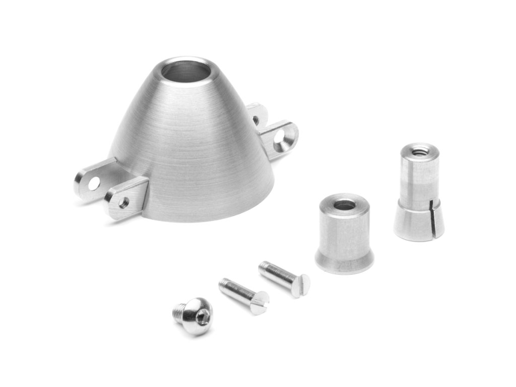 Precizní duralový TURBO kužel pro sklopnou vrtuli o průměru 36 mm s kleštinou 4,0mm, s 3 mm čepy pro vrtulové listy s kořenem o tlouštce 8 mm. Vyrobeno v České republice.Doplňkové parametry