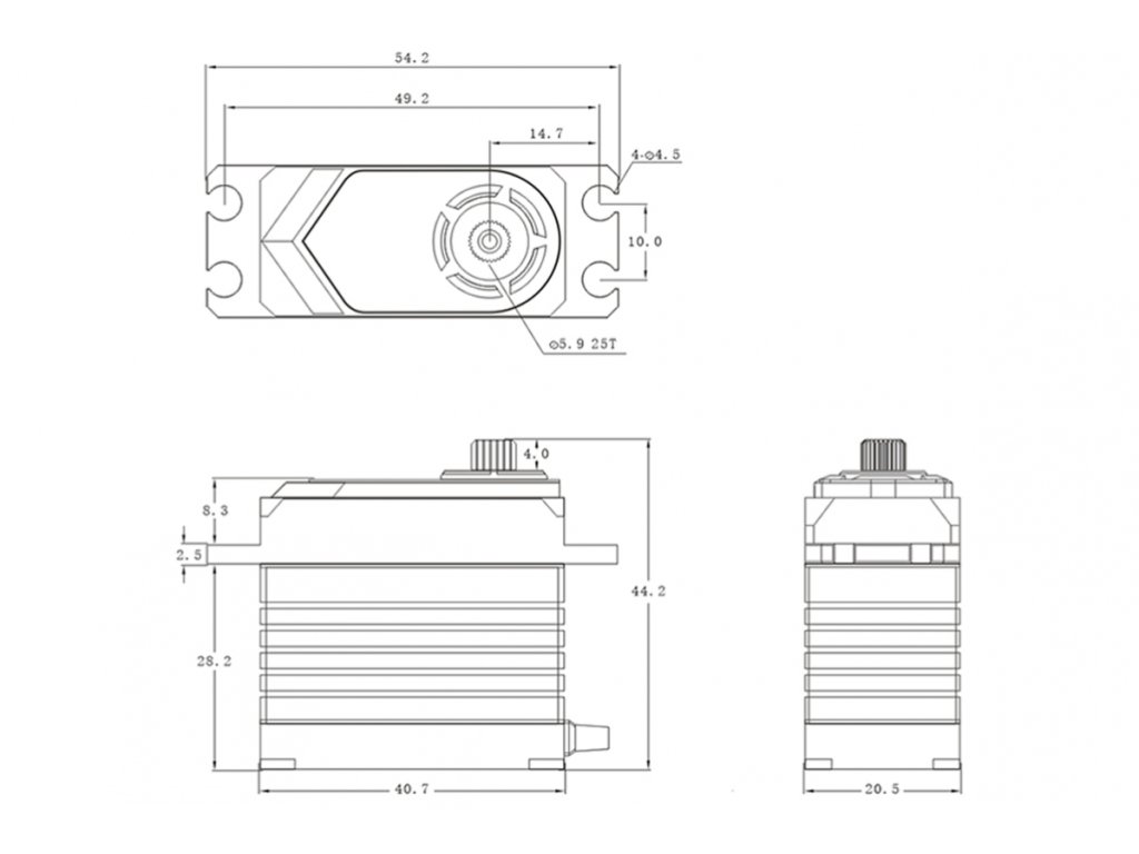- Tah/Točivý moment (7.4V): 40,0kg.cm