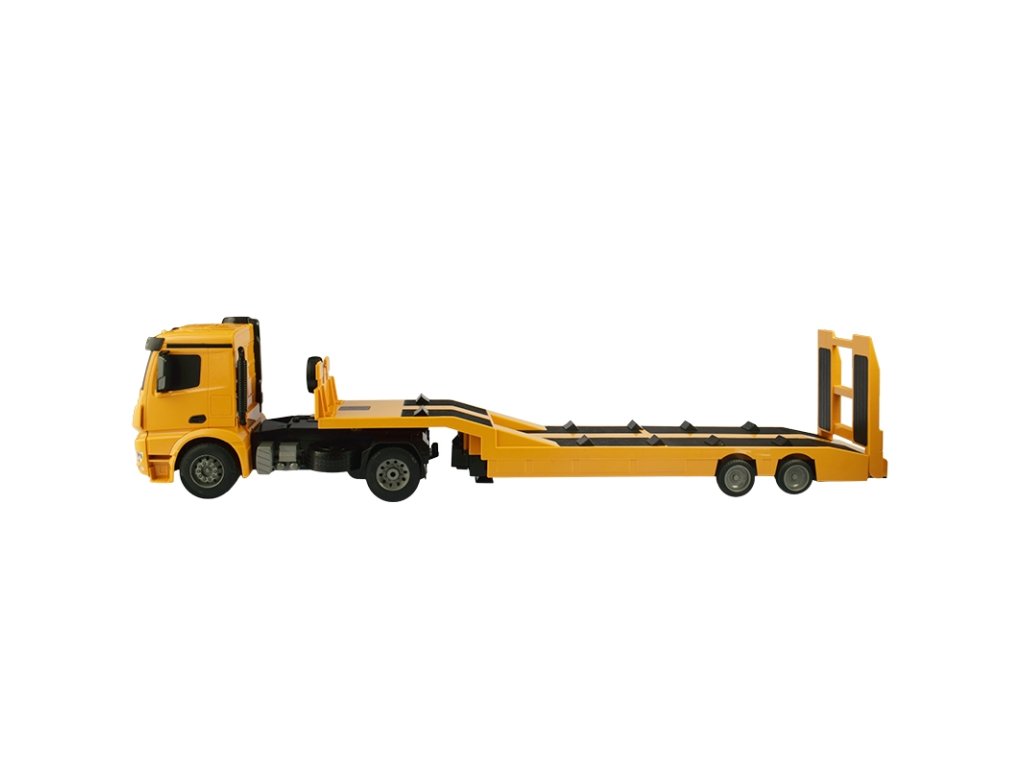 - Dálkové ovládání: Model je vybaven 2.4GHz dálkovým ovládáním, které zajišťuje plynulé a bezproblémové řízení. S tímto ovladačem můžete kontrolovat pohyb kamionu, zvedání a spouštění rampy pro nakládání aut.
