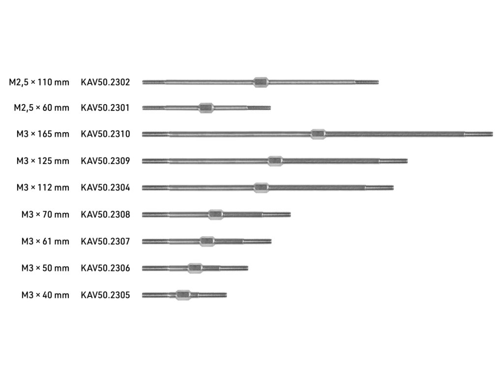 Snadné, rychlé a přesné nastavení délky! Nastavitelné táhlo na stejný způsob jako jsou spojovačky u RC automobilových speciálů. Vyrobeno z nerezové oceli.