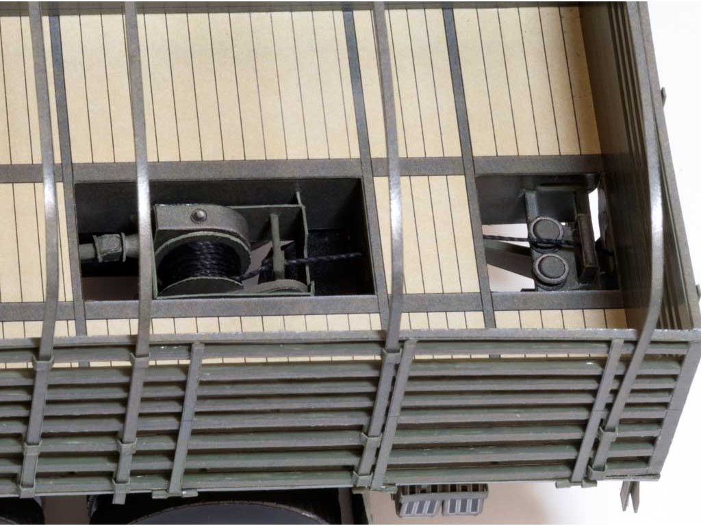Model můžete vytvořit s interiérem kabiny řidiče či bez něj. Přední kola jsou natáčecí, kapota motoru se dá zvednout. Valníková nástavba obsahuje také detailní naviják. Přelepkami si můžete vytvořit vozidlo civilní obrany či vozidlo ASR. Model si můžete doplnit do soupravy dříve vydaným valníkovým přívěsem BSS PV 16.12A (vydal RipperWorks jako RW-18).