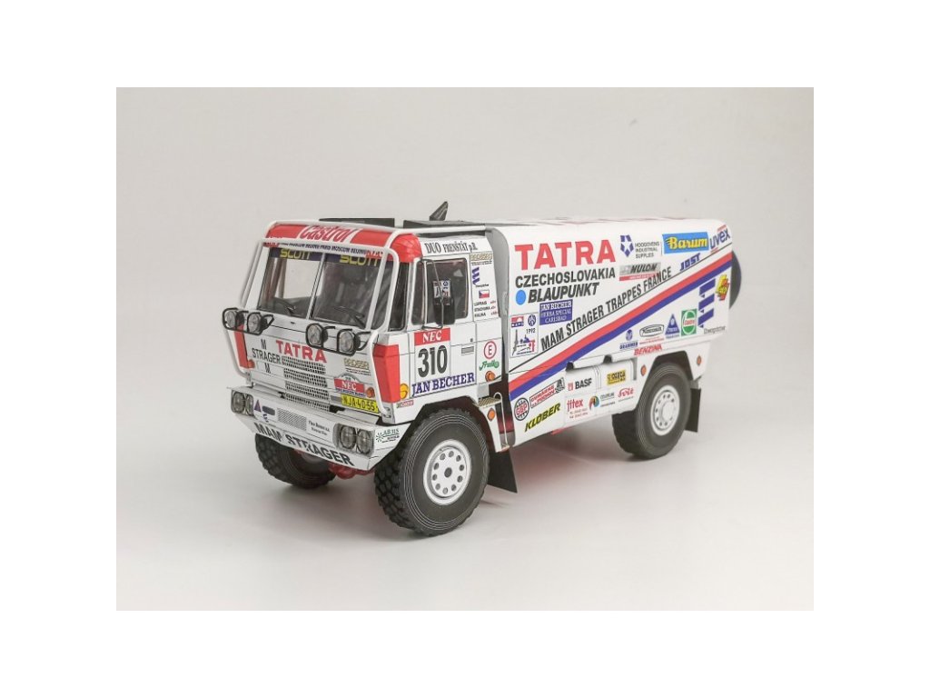 Papírový model dakarského speciálu Tatra 815 4x4. Z vystřihovánky si můžete slepit jednu ze dvou verzí č. 310 ze závodu Rallye Paříž - Moskva - Peking 1992 s posádkou Karel Loprais, Radomír Stachura, Josef Kalina nebo č. 502 ze závodu Paris - Sirte - Le Cap 1992 s posádkou Karel Loprais, Radomír Stachura, Josef Kalina.
