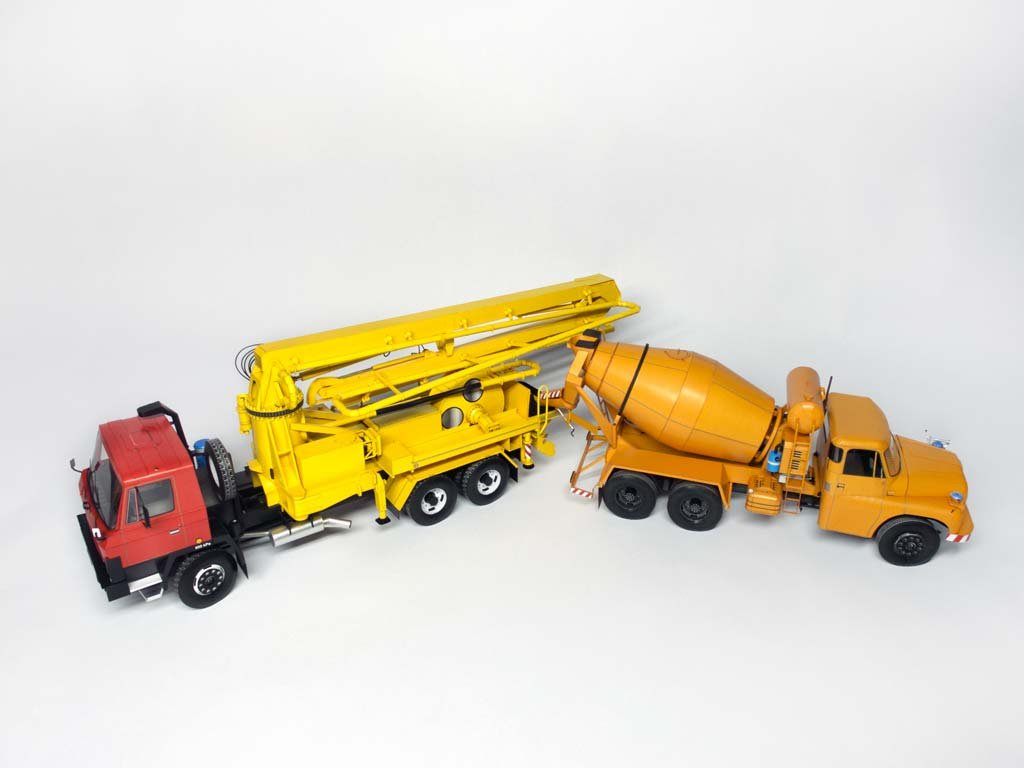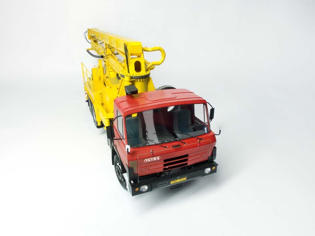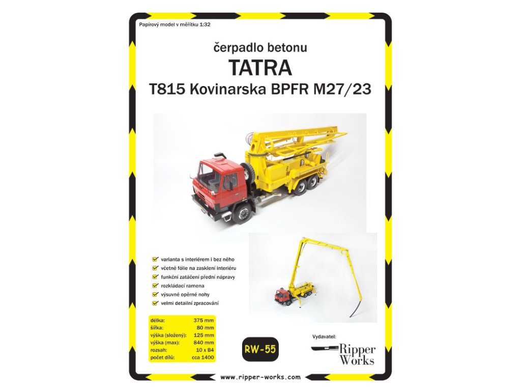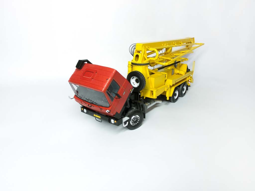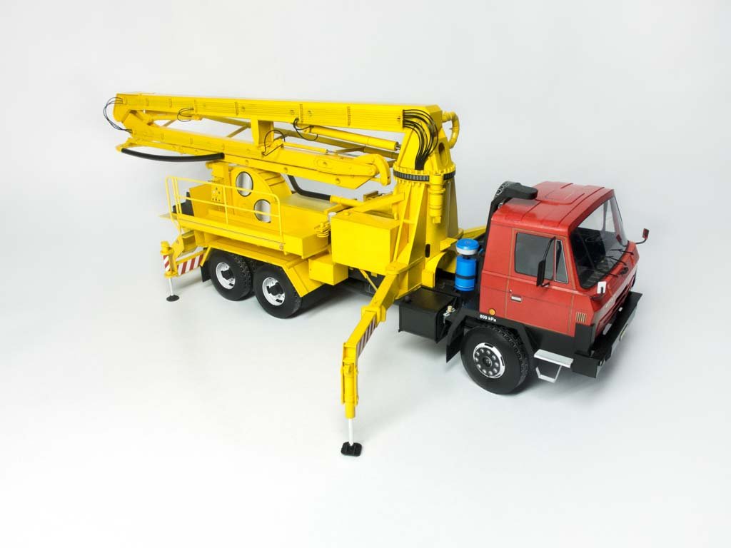 Model můžete vytvořit s interiérem kabiny řidiče či bez něj, se zatáčecími koly a se sklopnou kabinou. Výložník je otočný a jednotlivá ramena jsou rozkládací. Opěrné nohy jsou výklopné a výsuvné. Jedná se o rozsáhlý a velmi složitý model - zvláště pohyblivé potrubí na ramenech je velmi náročné na přesné zpracování! Model můžete vhodně doplnit autodomíchávačem Tatra 148 (vydal RipperWorks pod číslem RW-47).
