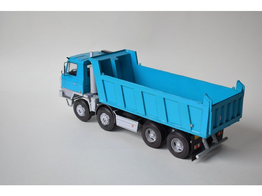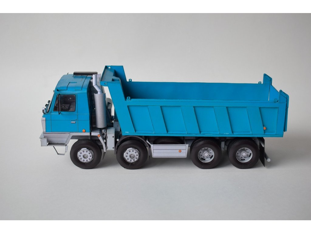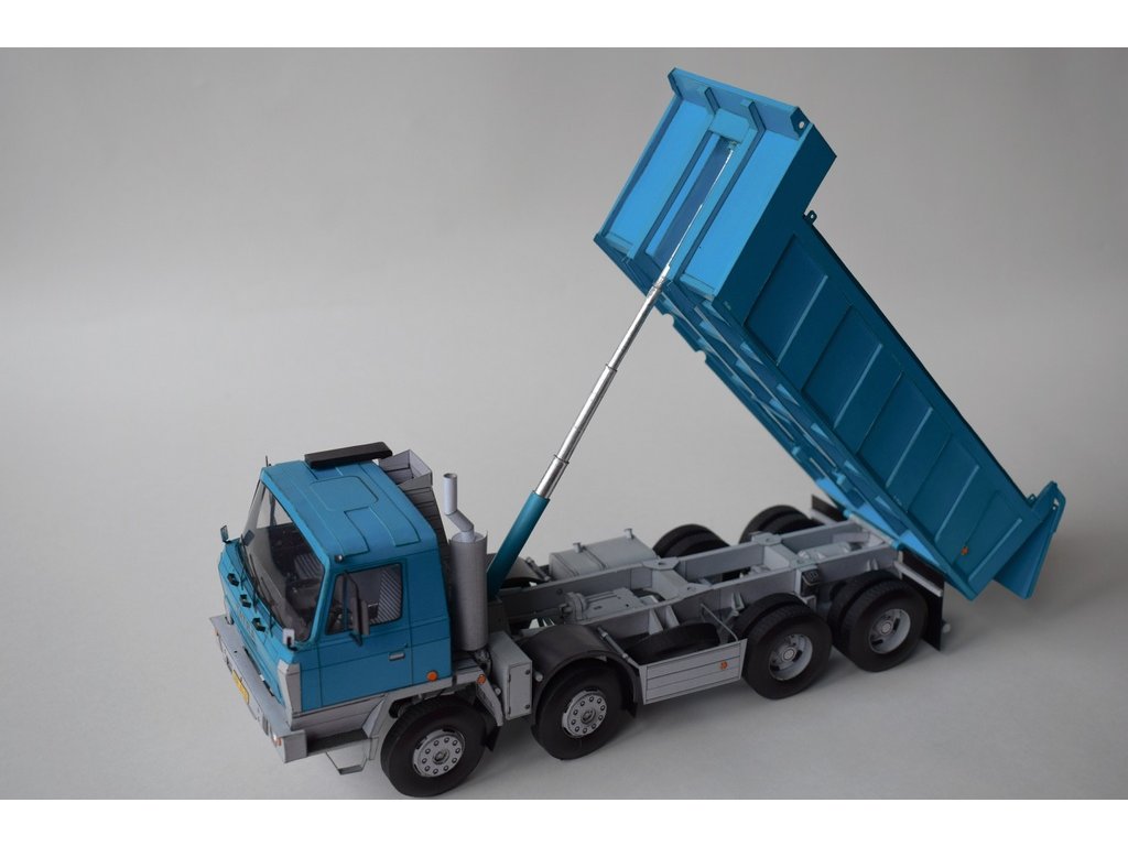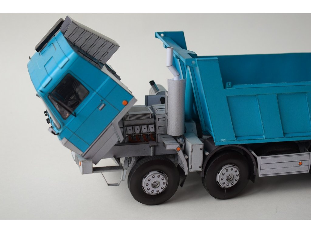 Model můžete vytvořit s interiérem kabiny řidiče, se zatáčecími koly, sklopnou kabinou a sklápěcí korbou, včetně dlouhého hydraulického válce.