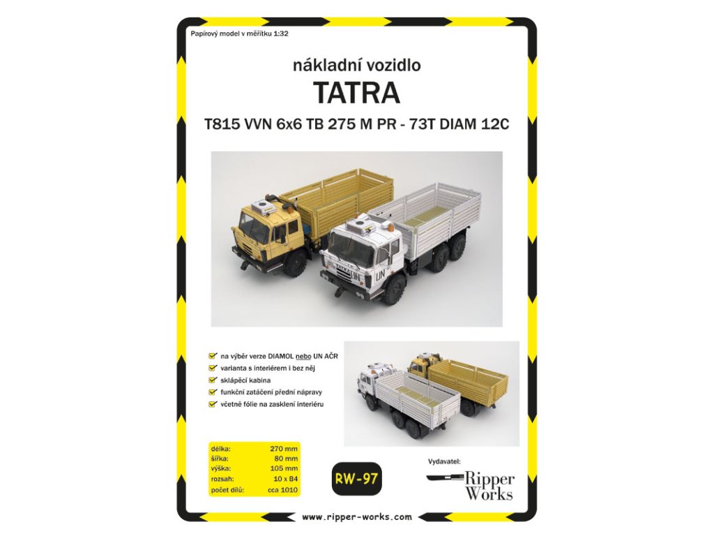 Vystřihovánka obsahuje variantní díly pro stavbu buď původní pískové verze Diamoil, nebo bílé zbarveného vozidla AČR - UN. Pokud si chcete postavit obě, musíte si zakoupit dvě vystřihovánky. Model můžete vytvořit s interiérem kabiny či bez něj, se zatáčecími koly, sklopnou kabinou a funkčními tažnými zařízeními.