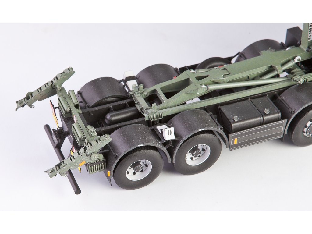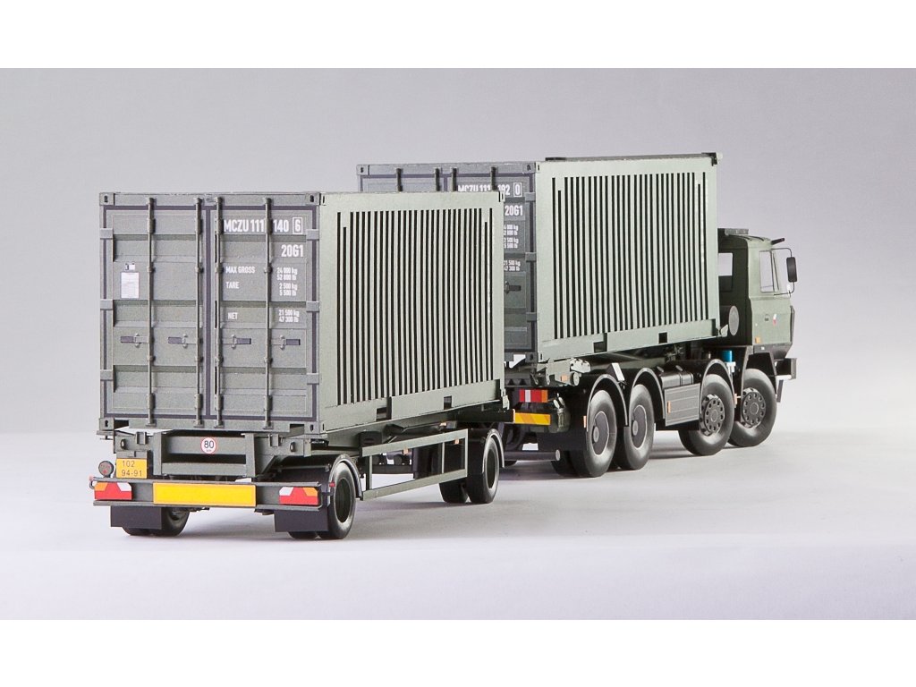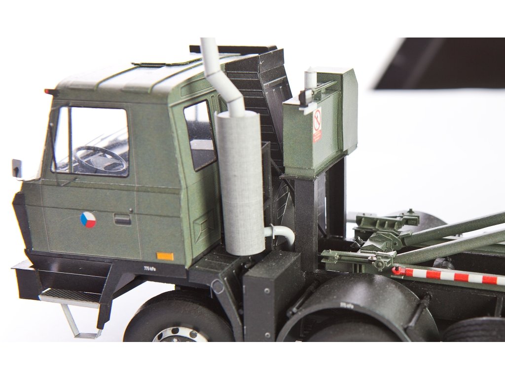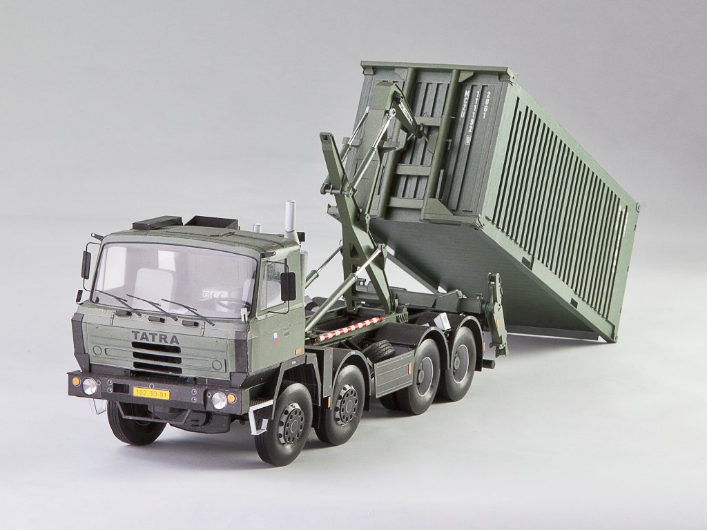 Model můžete vytvořit s interiérem kabiny řidiče, se zatáčecími koly, sklopnou kabinou. Nástavba je plně funkční a umožňuje naložit ISO 1C kontejner (je součástí vystřihovánky) pomocí H-adaptéru. Model můžete vhodně doplnit kontejnerovým přívěsem Panav PV 18 LP (vydává RipperWorks pod číslem RW-78, tato vystřihovánka rovněž obsahuje kontejner).