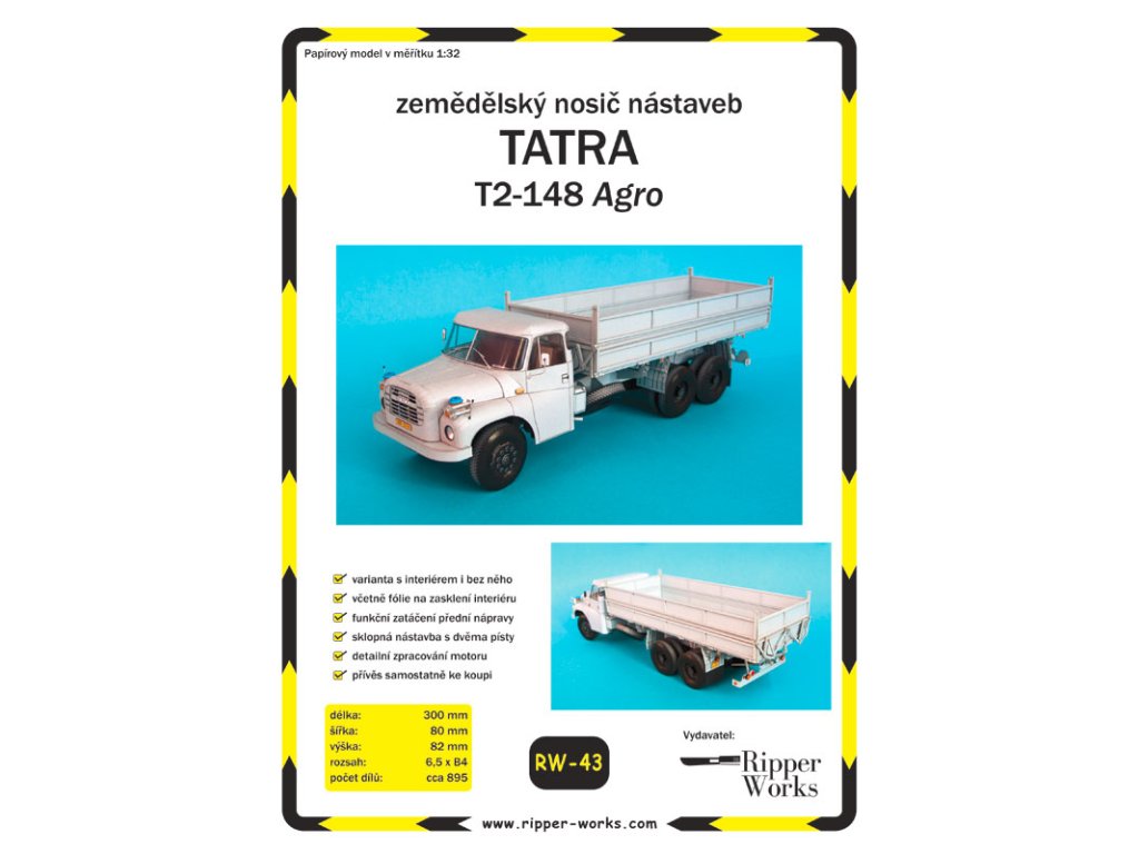 Model můžete vytvořit s interiérem kabiny řidiče či bez něj. Přední kola jsou natáčecí, kapota motoru se dá zvednout. Součástí modelu je dvojstranně sklopná korba. Na nosič můžete umístit i jinou nástavbu - velkoobjemovou, rozmetadlo či fekální. Tyto nástavby byly vydány jako součást modelu Tatra 815 Z 22 (RW-30). Při použití základní sklápěcí nástavby můžete model doplnit o přívěs PS2 16.12 (vydal RipperWorks jako RW-28).