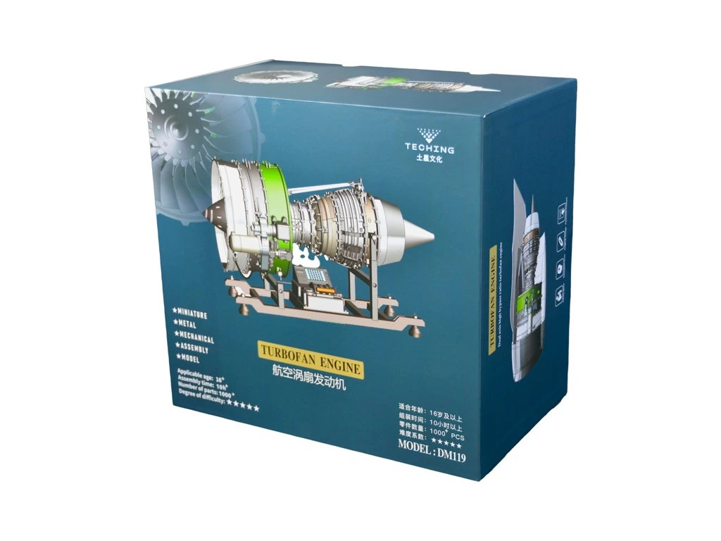 Stavebnice precizního kovového modelu Teching - proudový motor 1:10. Autenticky zpracovaná konstrukce skutečného motoru s průzory pro ukázku provozu. Model nabízí realistické mechanické funkce - pohyb rotoru všech stupňů. Věrně jsou zobrazeny hlavní komponenty, mezi které patří ventilátor (dmychadlo), dvoustupňový nízkotlaký kompresor, čtyřstupňový vysokotlaký kompresor, vysokotlaká turbína a dvoustupňová nízkotlaká turbína. Motor má elektrické otáčení a zvukové efekty. Otáčky motoru lze regulovat pákou inspirovanou plynovými pákami používanými v kokpitech letadel. Stavebnice je navržena tak, aby již samotné sestavování bylo zážitkem. Díky vysoce kvalitnímu zpracování a viditelné funkčnosti jednotlivých částí je model vhodný jako výstavní a reprezentativní solitér nebo jako učební pomůcka. Model ocení studenti, nadšenci do techniky a sběratelé. Jedná se o originální návrh a výrobu značky Teching s přesně opracovanými kovovými díly, obrazovým návodem pro snadné sestavení a v prémiovém balení.