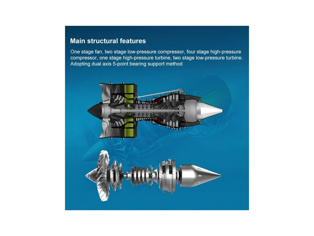 Předlohou je moderní dvouproudový motor s vysokým obtokovým poměrem (high-bypass turbofan), který se používá u nejrozšířenějších dopravních letadel současnosti, jako jsou Airbus A320, Boeing 737 či Comac C919. Tento typ motoru představuje vrchol současného leteckého inženýrství a je považován za jeden z nejkomplexnějších výrobků moderního průmyslu. Klíčovými parametry jsou především vysoká účinnost spalování, optimální tah při nízké spotřebě paliva a minimalizace emisí a hluku.