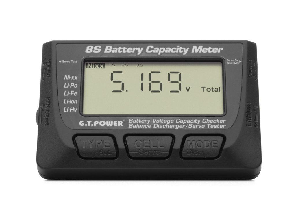 Tester LiPo akumulátorů 1-8S je multifunkční měřící přístroj umožňující testování stavu akumulátorových sad většiny hlavních modelářských typů: Li-Po, Li-ion, LiFe, LiHV, NiCd a NiMH. Dále umožňuje vybíjení s balancováním a autonomní balancování lithiových sad pro vyrovnání napětí jednotlivých článků na s tejnou úroveň. V režimu servotesteru jej lze použít pro testování serv a elektronických regulátorů otáček.
