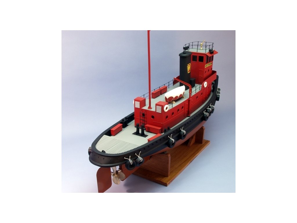 Stavebnice říčního remorkéru v měřítku 1:32 v rozsypu pro pohon elektromotorem řady 500-600 pro pokročilé stavitele. Díky vysokému předpracování většiny dílů není stavba nijak zvlášť náročná na zručnost a dílenské vybavení - ale samozřejmě pečlivá a trpělivá práce je v lodním stavitelství nezbytná pro dosažení dobrého výsledku. Pro lepení budete potřebovat střední vteřinové lepidlo, epoxyd a lepidlo pro lepení plastikových modelů. Vlastní stavba probíhá dle dvoupohledového výkresu ve zmenšené velikosti zachycujícího vnější vzhled lodi. Jednotlivé stavební kroky se provádějí dle perspektivních výkresů zobrazujících detailně konstrukci dané části lodi, vybrané klíčové kroky a zhotovování doplňků jako jsou třeba zábradlí nebo žebříky usnadňují předtištěné šablony v měřítku 1:1. Pro konečný barevný finiš budou na malé plochy vyhovovat např. akrylové barvy na plastikové kity, větší plochy trupu potom můžete nastříkat vhodným sprejem na karoserie.