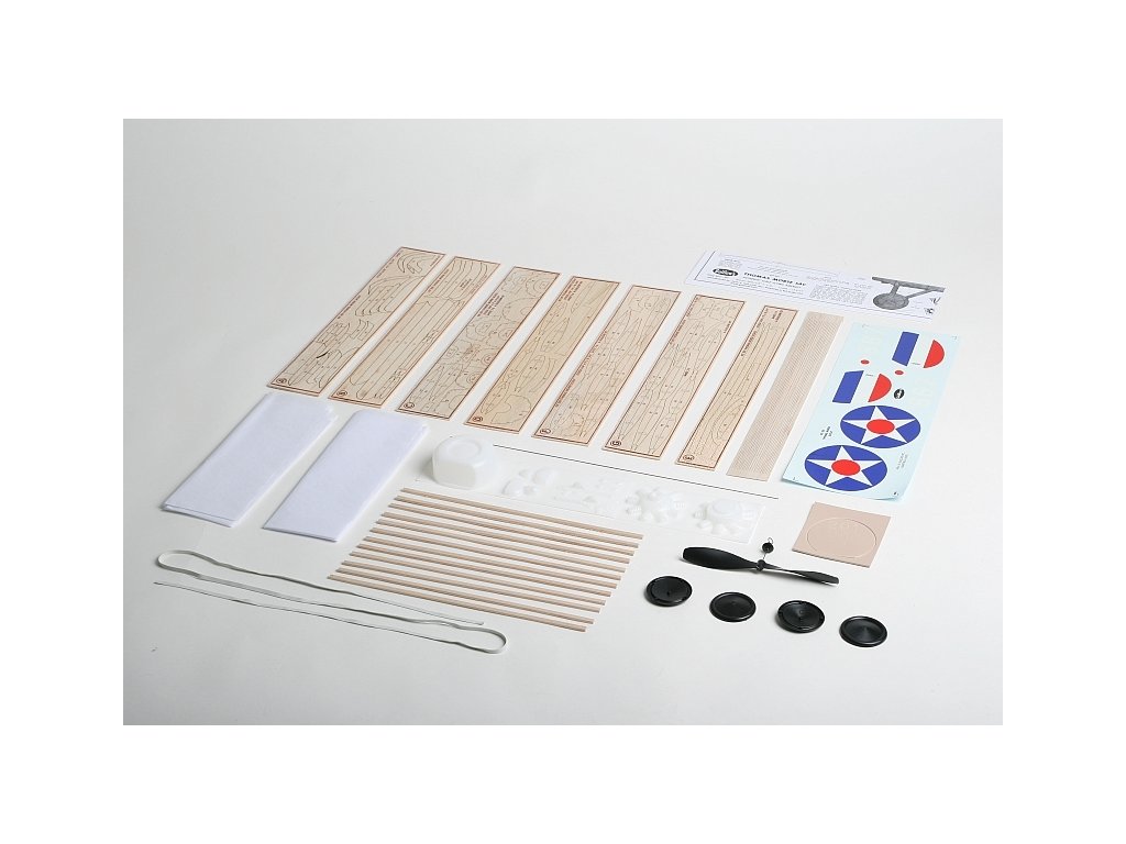 Stavebnice obsahuje: balsové laserem vyřezávané díly, balsové nosníky, předseknuté díly z plastikové překližky, vakuově lisované maketové díly (kryt motoru, maketa motoru...), plastovou vrtuli s hřídelí a hlavicí, gumový svazek (guma 5x1mm), plastová kola, ocelovou strunu na podvozek a další drobné díly, plastová kola, potahový papír, aršík mokrých obtisků, stavební plán.