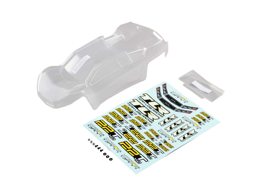 Náhradní díl pro RC modely aut TLR 22T 4.0: karosérie nenebarvená s křídlem.