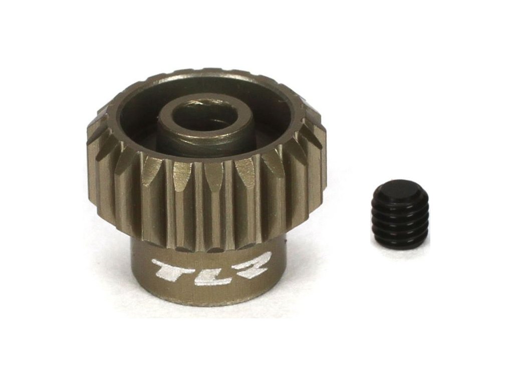 TLR pastorek na hřídel 3.17 mm (1/8") s 21 zuby a modulem ozubení 48DP pro RC modely aut. Vyrobeno z hliníkové slitiny. Součástí balení je červík.