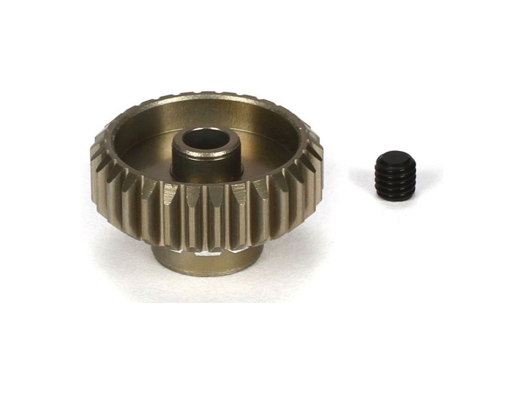 TLR pastorek na hřídel 3.17 mm (1/8") s 29 zuby a modulem ozubení 48DP pro RC modely aut. Vyrobeno z hliníkové slitiny. Součástí balení je červík.
