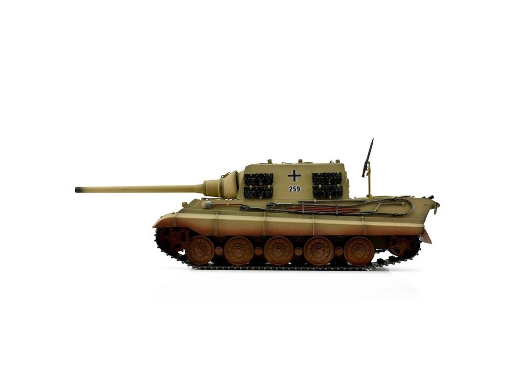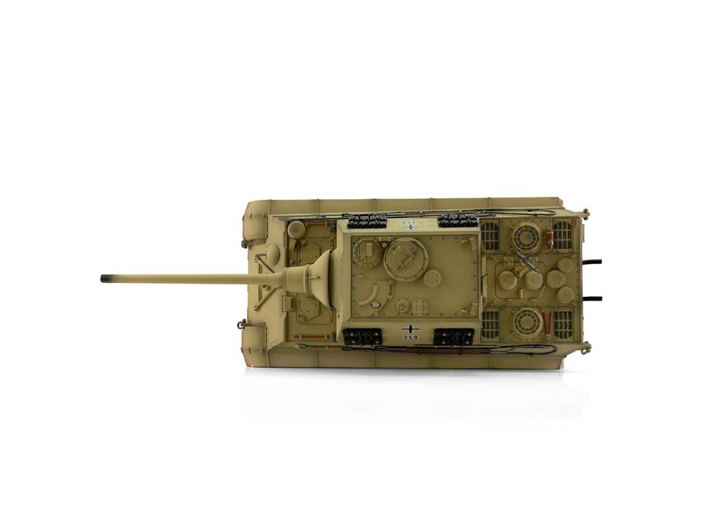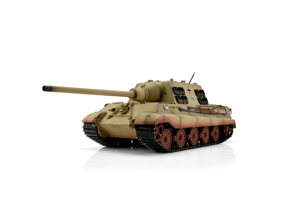 S hmotností kolem sedmi kilogramů je Jagdtiger ideální pro náročného zákazníka. V profesionální edici se vyznačuje vynikající kvalitou barvy airbrush, technologií desek plošných spojů 2,4 GHz a novým reproduktorem. Tento model má vynikající jízdní vlastnosti, širokou škálu funkcí a realistický zvuk. Vysoce kvalitní pásy, hnací a vodicí kola s válečky, stejně jako spodní část trupu a bojová věž jsou vyrobeny z kovu. Mnoho malých dílů a různých samolepek dokonale završuje repliku věrného měřítka.