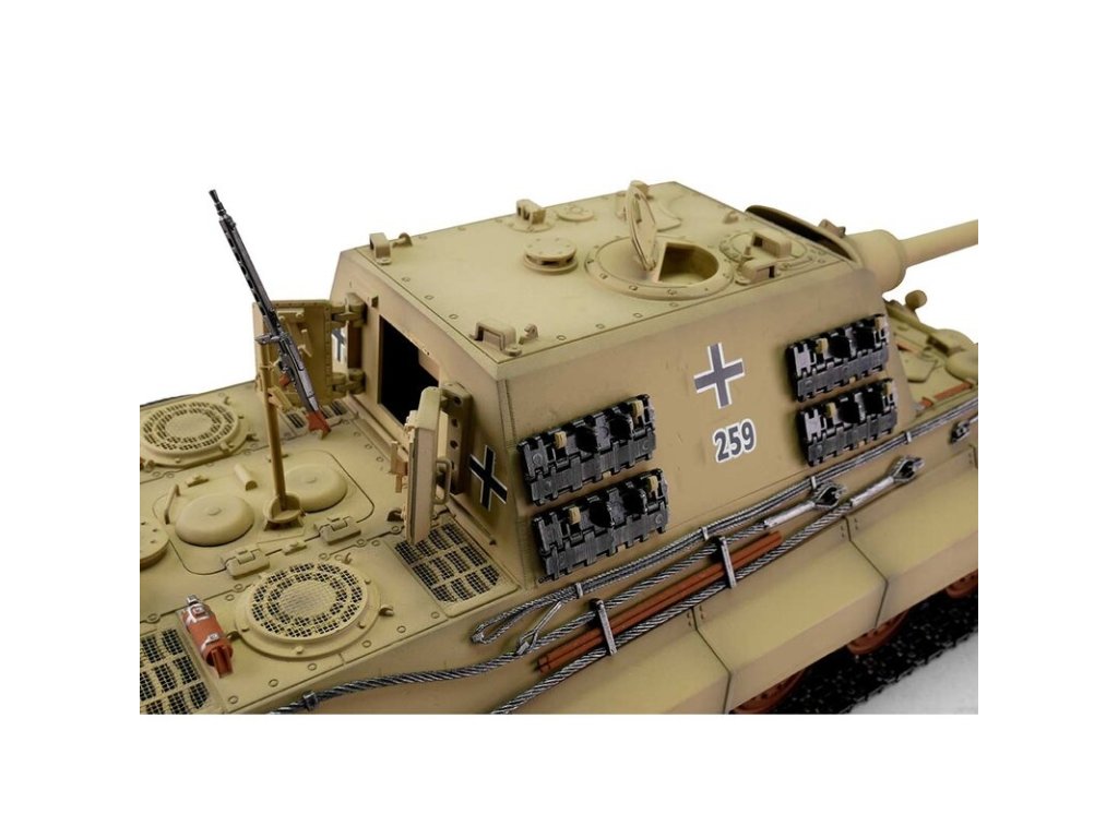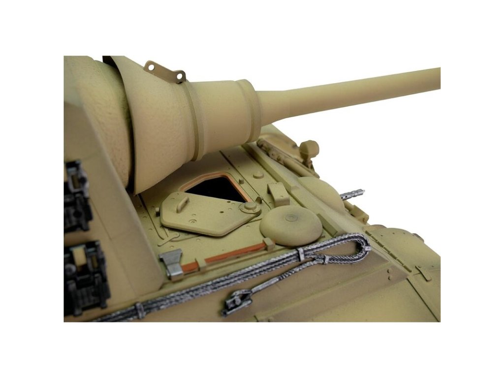 Výkonný model tanku má RC ovládání 2,4 GHz. Vozidlo je vybaveno BB Airosft systémem, takže jsou možné bitvy jako v reálném boji. Motory s optimalizovaným točivým momentem dodávají modelu Jagdtiger přesnou a plynulou jízdu. Kovové převody s robustními převody a vylepšeným převodem zajišťují větší výkon. Díky proporcionálnímu ovládání se můžete s tankem přiblížit velmi pomalu a plynule zvyšovat rychlost. Jagdtiger se pohybuje dopředu a dozadu, také s otočením doleva a doprava. Lze jej také na místě otočit doleva nebo doprava. Můžete zvednout a spustit dělo a otočit věž o 360 stupňů. Realistický zážitek završují různé zvuky motoru a kouř z výfuku.
