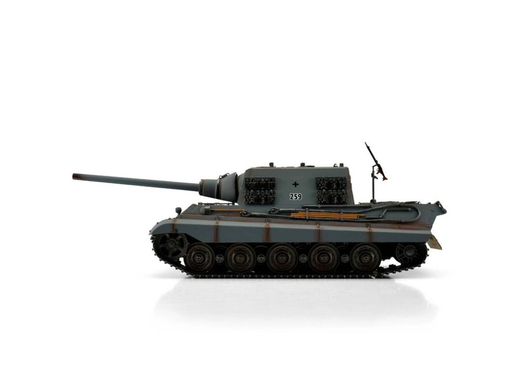 S hmotností kolem sedmi kilogramů je Jagdtiger ideální pro náročného zákazníka. V profesionální edici se vyznačuje vynikající kvalitou barvy airbrush, technologií desek plošných spojů 2,4 GHz a novým reproduktorem. Tento model má vynikající jízdní vlastnosti, širokou škálu funkcí a realistický zvuk. Vysoce kvalitní pásy, hnací a vodicí kola s válečky, stejně jako spodní část trupu a bojová věž jsou vyrobeny z kovu. Mnoho malých dílů a různých samolepek dokonale završuje repliku věrného měřítka.