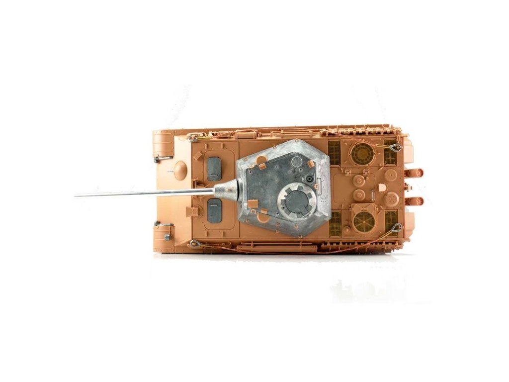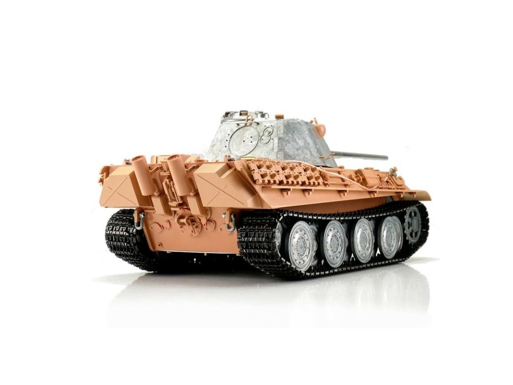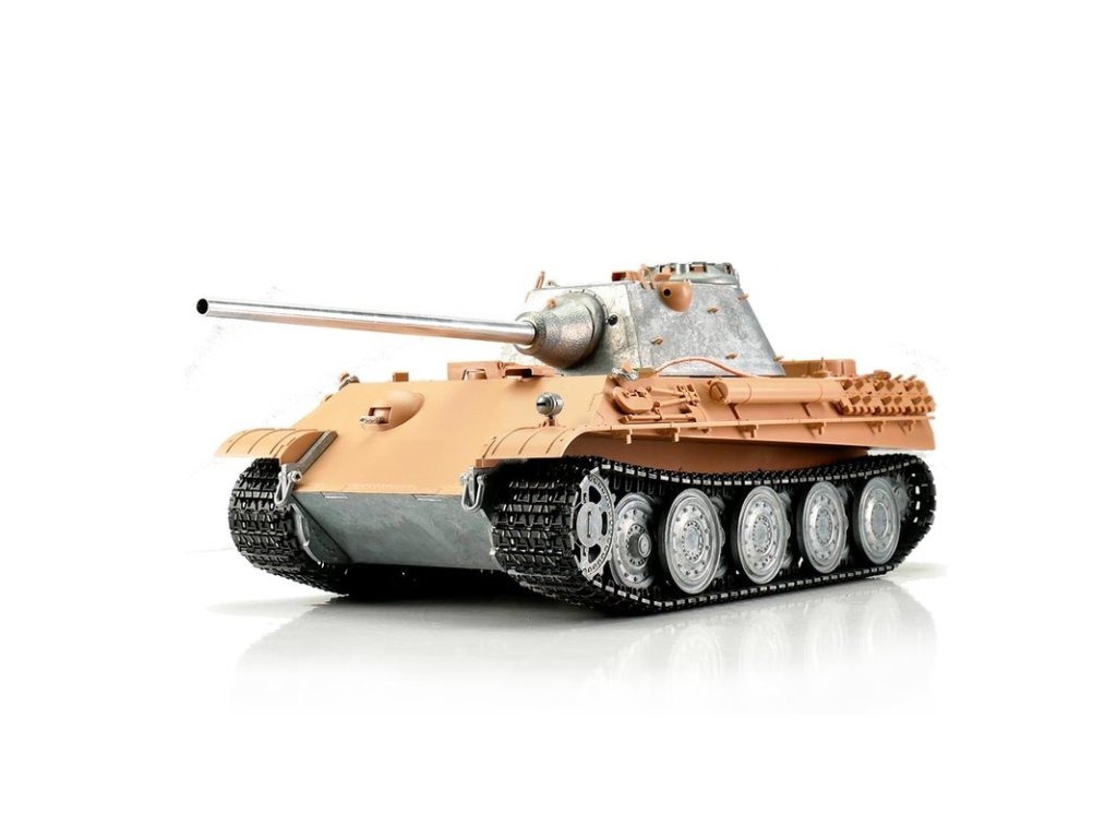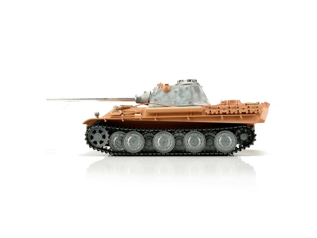 S hmotností kolem sedmi kilogramů je Panther F ideální pro náročného zákazníka. V profesionální edici se vyznačuje vynikající kvalitou barvy airbrush, technologií desek plošných spojů 2,4 GHz a novým reproduktorem. Tento model má vynikající jízdní vlastnosti, širokou škálu funkcí a realistický zvuk. Vysoce kvalitní pásy, hnací a vodicí kola s válečky, stejně jako spodní část trupu a bojová věž jsou vyrobeny z kovu. Mnoho malých dílů a různých samolepek dokonale završuje repliku věrného měřítka.