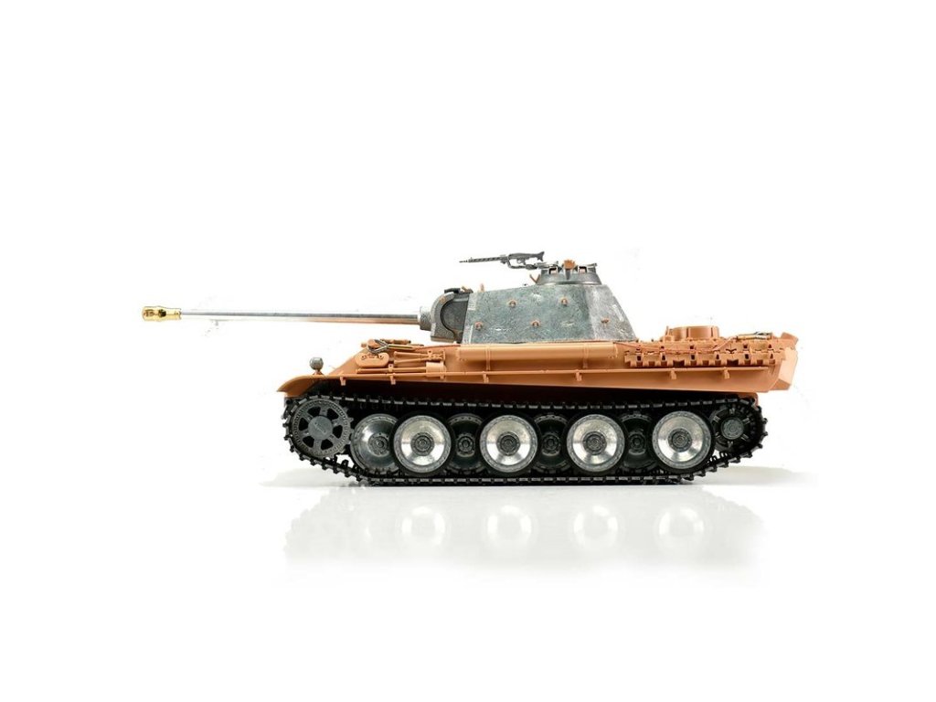 S hmotností kolem sedmi kilogramů je Panther G ideální pro náročného zákazníka. V profesionální edici se vyznačuje vynikající kvalitou barvy airbrush, technologií desek plošných spojů 2,4 GHz a novým reproduktorem. Tento model má vynikající jízdní vlastnosti, širokou škálu funkcí a realistický zvuk. Vysoce kvalitní pásy, hnací a vodicí kola s válečky, stejně jako spodní část trupu a bojová věž jsou vyrobeny z kovu. Mnoho malých dílů a různých samolepek dokonale završuje repliku věrného měřítka.