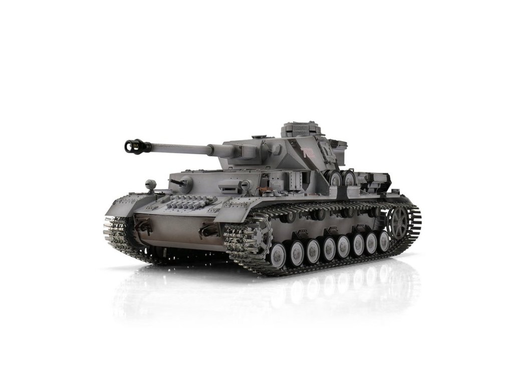 Výkonný model tanku má RC ovládání 2,4 GHz. Vozidlo je vybaveno IR bitevním systémem, takže jsou možné bitvy s vozidly ze stejné série. Motory s optimalizovaným točivým momentem dodávají modelu PzKpfw IV Ausf. G kamufláž přesnou a plynulou jízdu. Kovové převody s robustními převody a vylepšeným převodem zajišťují větší výkon. Díky proporcionálnímu ovládání se můžete s tankem přiblížit velmi pomalu a plynule zvyšovat rychlost. PzKpfw IV Ausf. G kamufláž se pohybuje dopředu a dozadu, také s otočením doleva a doprava. Lze jej také na místě otočit doleva nebo doprava. Můžete zvednout a spustit dělo a otočit věž o 360 stupňů. Realistický zážitek završují různé zvuky motoru, zpětný zákluz hlavně, záblesk hlavně a kouř z výfuku.
