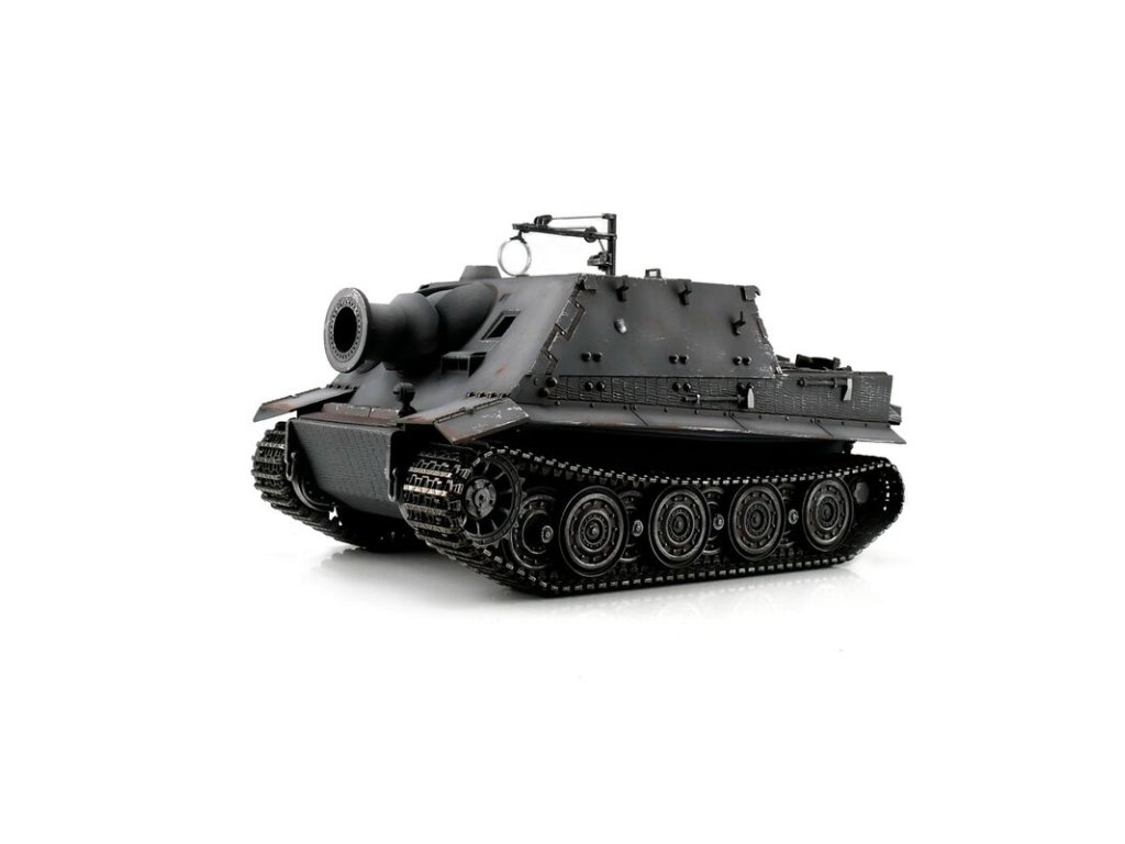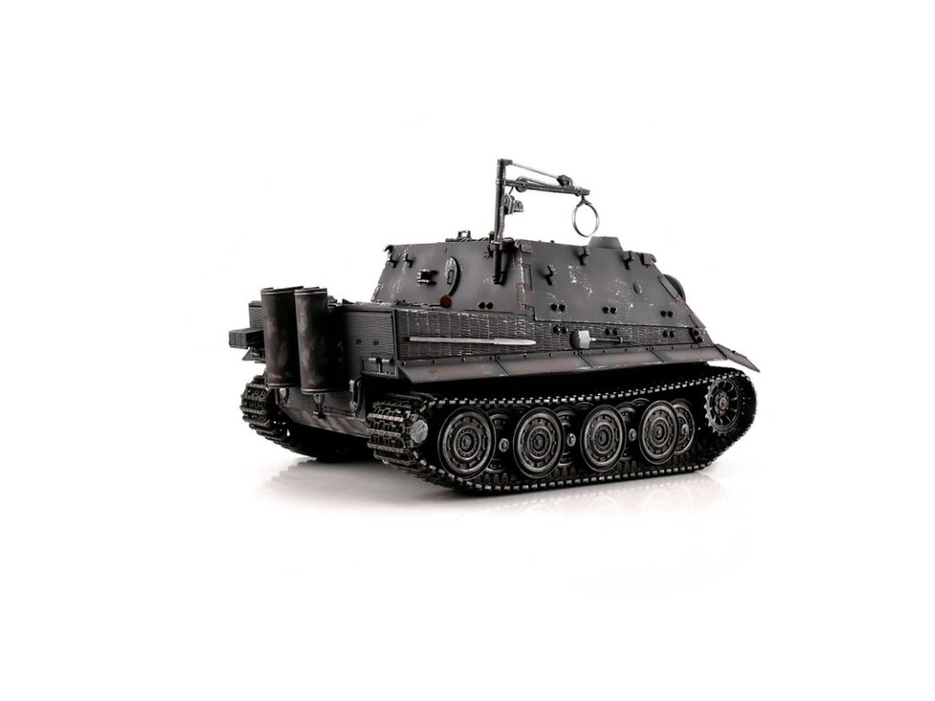 S hmotností kolem pěti kilogramů je Sturmtiger kamufláž ideální pro náročného zákazníka. V profesionální edici se vyznačuje vynikající kvalitou barvy airbrush, technologií desek plošných spojů 2,4 GHz a novým reproduktorem. Tento model má vynikající jízdní vlastnosti, širokou škálu funkcí a realistický zvuk. Vysoce kvalitní pásy, hnací a vodicí kola s válečky, stejně jako spodní část trupu a bojová věž jsou vyrobeny z kovu. Mnoho malých dílů a různých samolepek dokonale završuje repliku věrného měřítka.