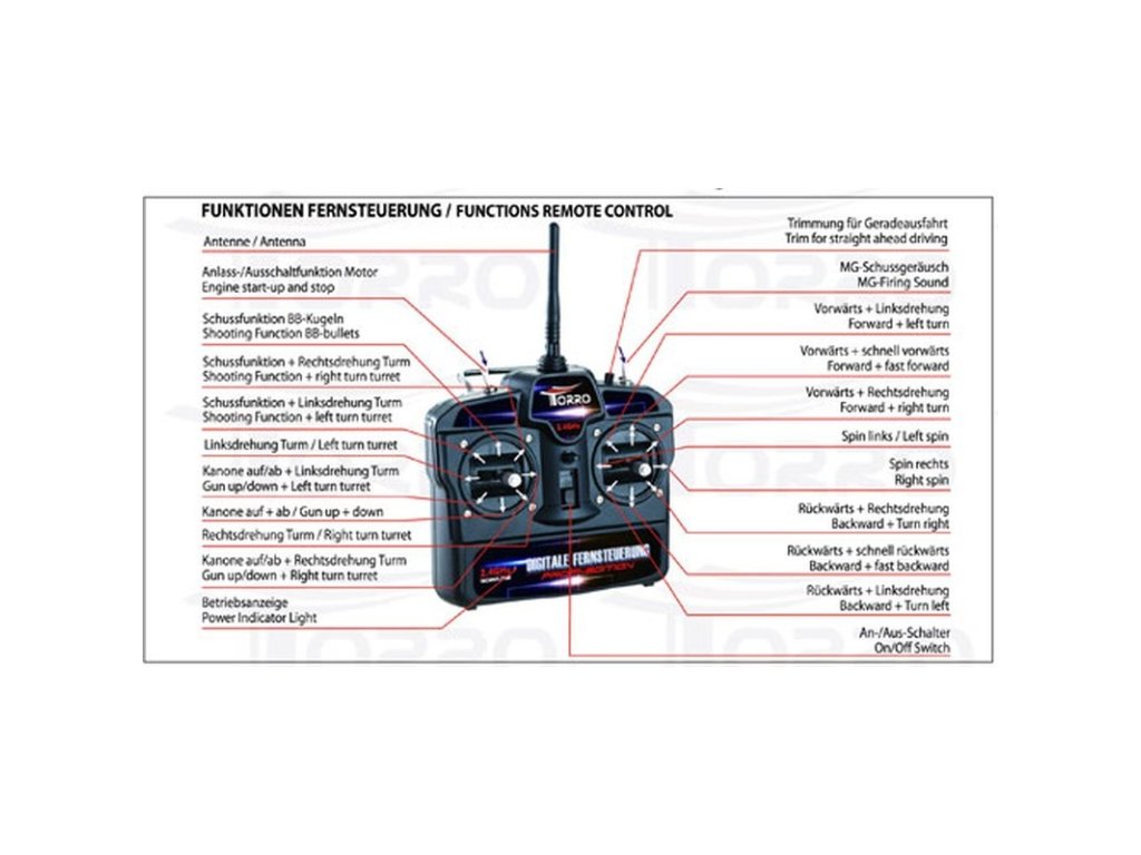 Výkonný model tanku má RC ovládání 2,4 GHz. Vozidlo je vybaveno IR bitevním systémem, takže jsou možné bitvy s vozidly ze stejné série. Motory s optimalizovaným točivým momentem dodávají modelu Sturmtiger kamufláž přesnou a plynulou jízdu. Kovové převody s robustními převody a vylepšeným převodem zajišťují větší výkon. Díky proporcionálnímu ovládání se můžete s tankem přiblížit velmi pomalu a plynule zvyšovat rychlost. Sturmtiger kamufláž se pohybuje dopředu a dozadu, také s otočením doleva a doprava. Lze jej také na místě otočit doleva nebo doprava. Můžete zvednout a spustit dělo a otočit věž o 320 stupňů. Realistický zážitek završují různé zvuky motoru, zpětný zákluz hlavně, záblesk hlavně a kouř z výfuku.